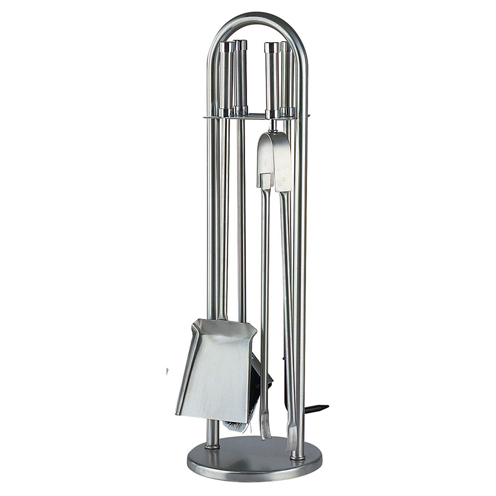 Setul include patru instrumente esențiale pentru îngrijirea șemineului dvs. , fiecare cu mânere lungi pentru gestionarea sigură a incendiului. Uneltele sunt suspendate elegant pe suporturi, făcând setul nu numai practic, ci și o parte integrantă a decorului dumneavoastră.