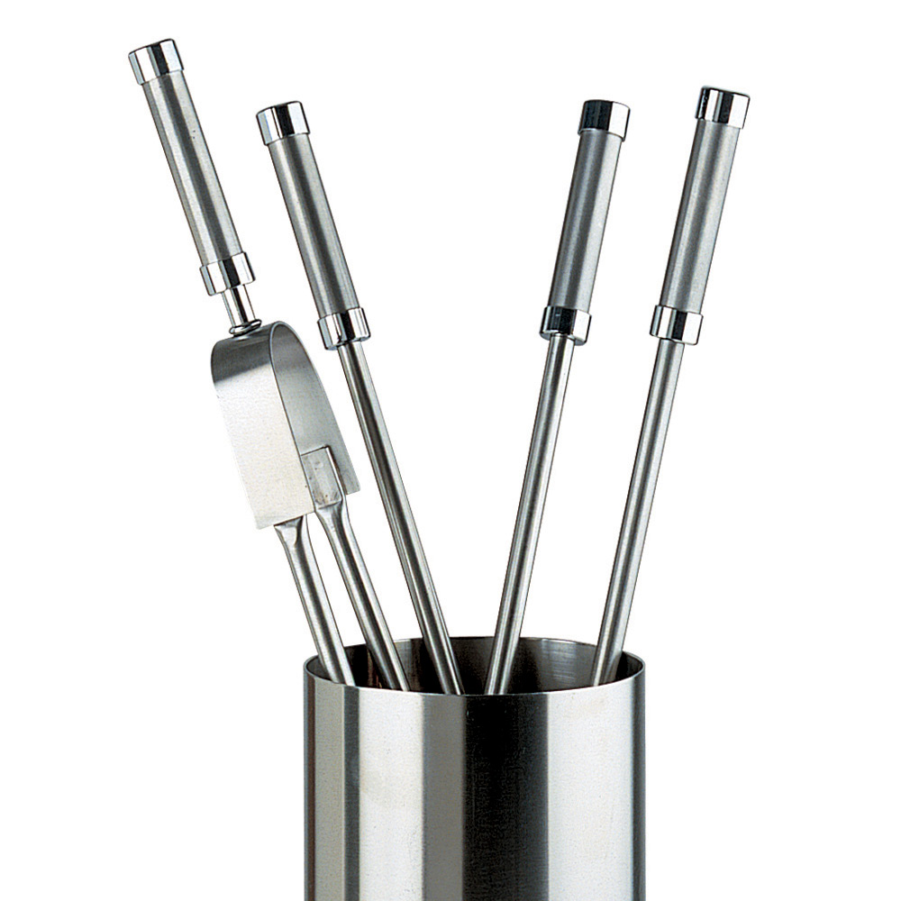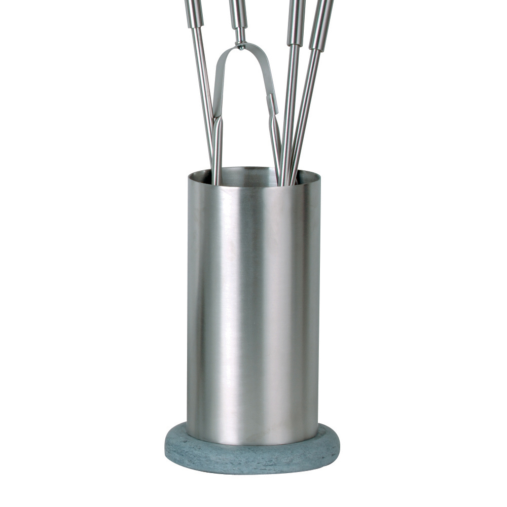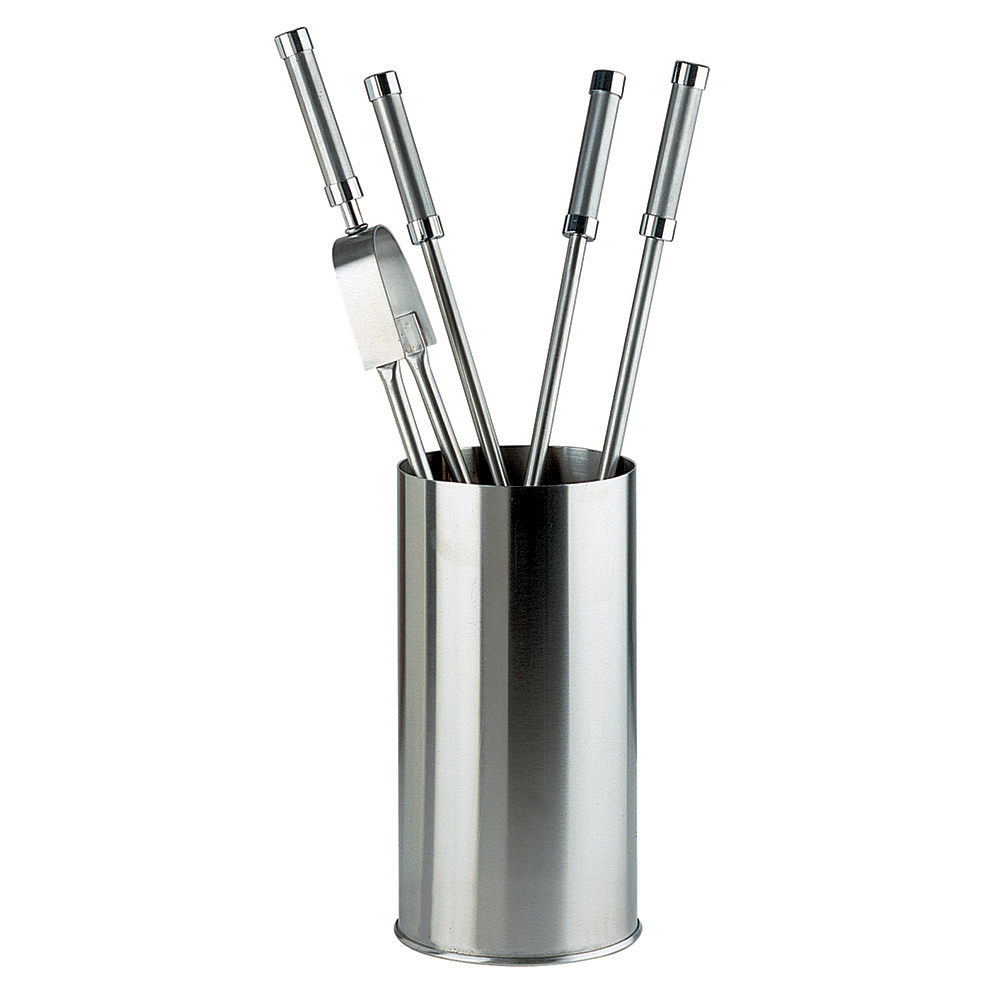 Dur și de lungă durată , acest suport de scule este conceput pentru a rezista la căldură și la utilizare frecventă. Fiecare ustensilă este finisată cu un mâner care oferă o prindere confortabilă și sigură , permițându-vă să manipulați lemnul și cenușa cu ușurință și stil. Suportul cilindric asigură că fiecare unealtă este întotdeauna ordonată și la îndemână, fără a sacrifica eleganța.