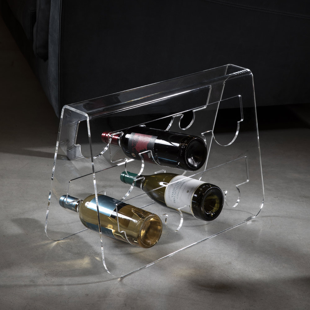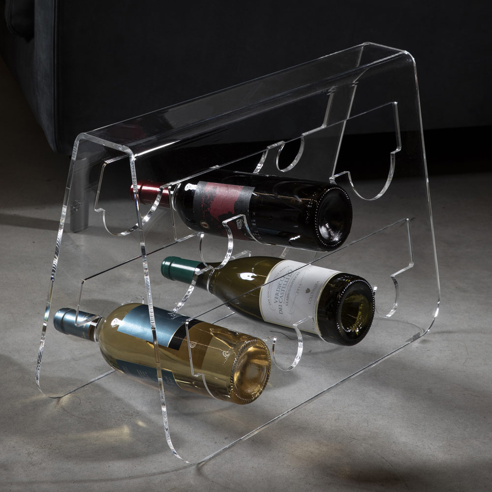 Suport pentru sticle de sine statator pentru vin din plastic transparent design made in Italy.