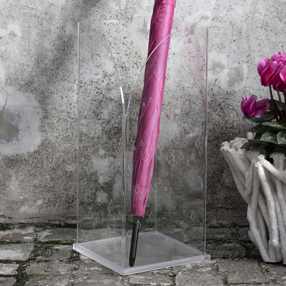 Suport pentru umbrele din cristal acrilic transparent cu picaturi de decor fabricat in Italia.