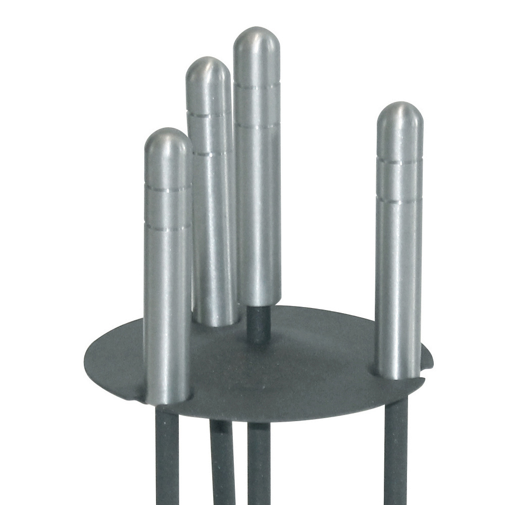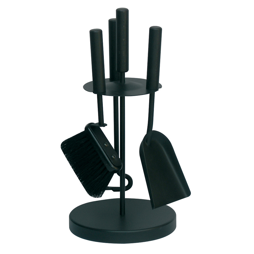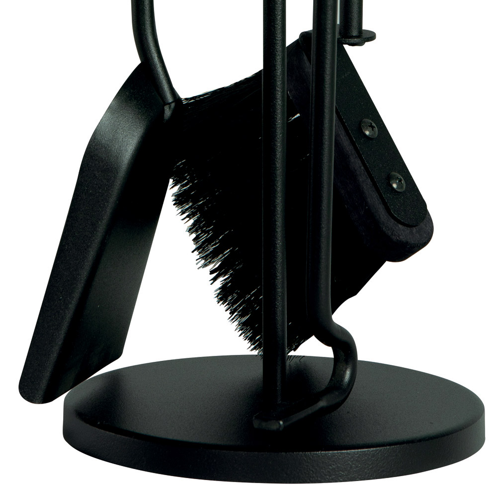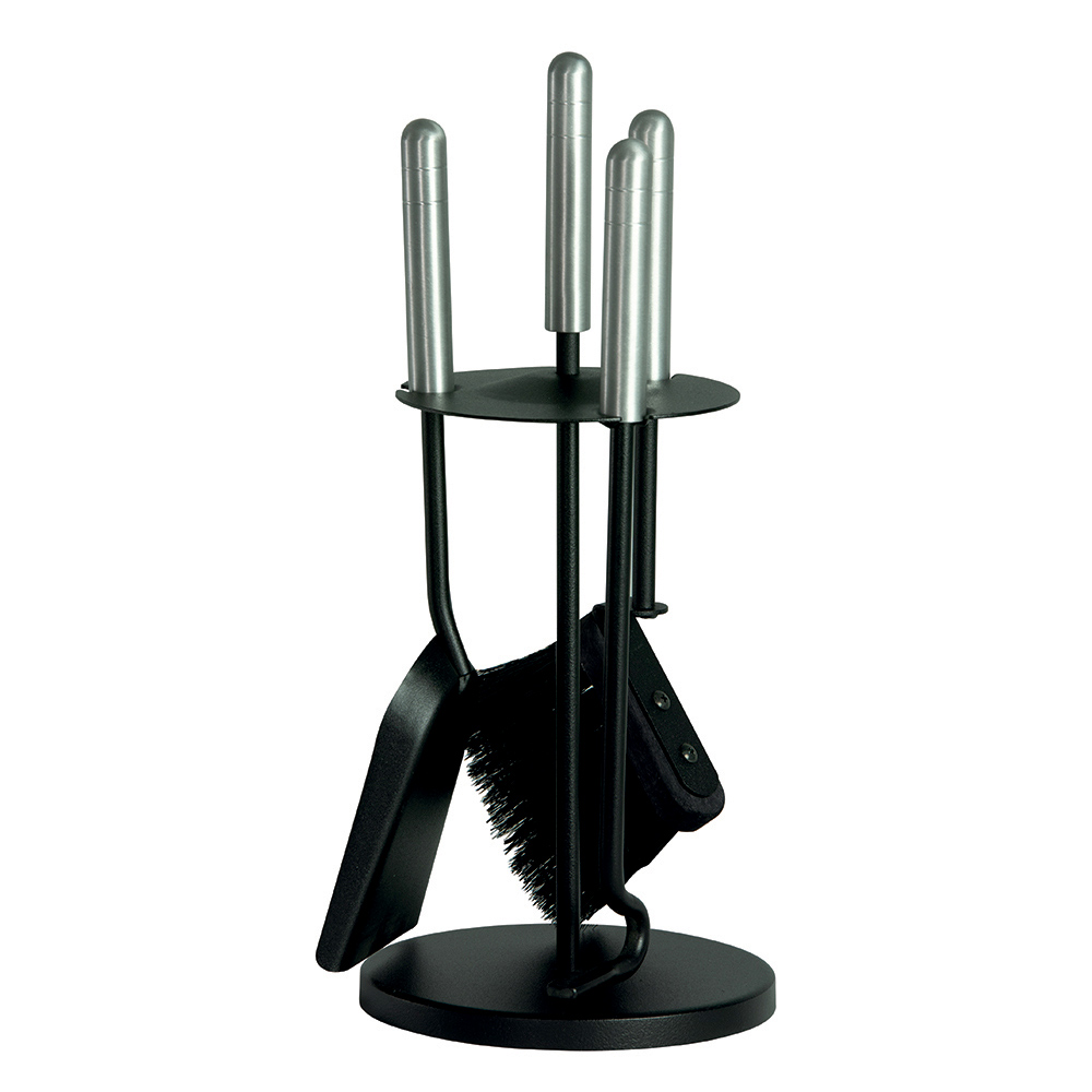 Cadrul subțire, dar durabil, ține cu grație 3 accesorii, toate cu mânere robuste care asigură o manevrare ușoară și durabilitate . Designul compact îți permite să așezi setul lângă șemineu fără a ocupa spațiu, în timp ce baza rotundă asigură stabilitate și ordine.
