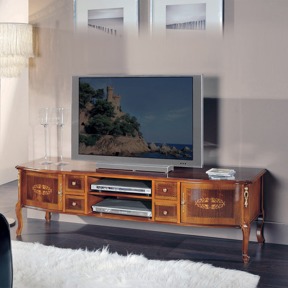 Comodă TV clasică din lemn cu intarsii, fabricată în Italia