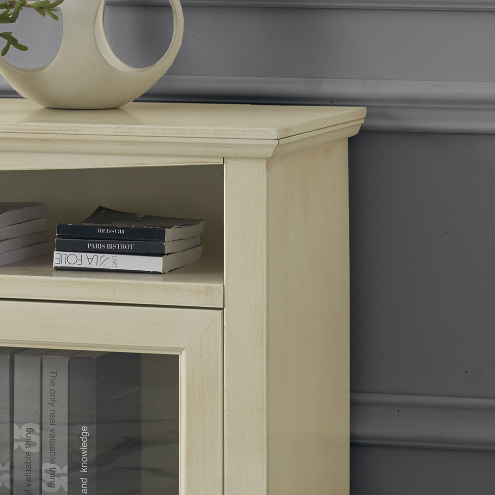 2 uși din sticlă și 3 compartimente deschise în întregime