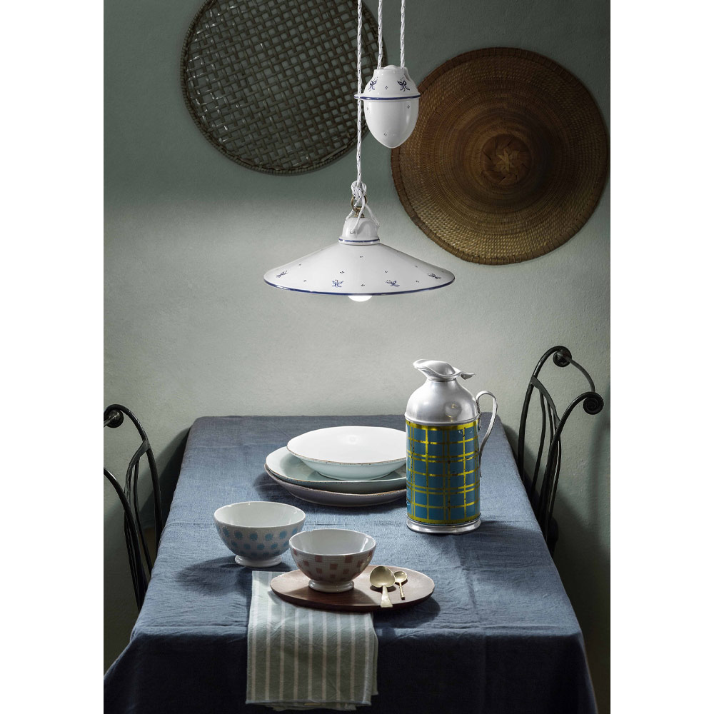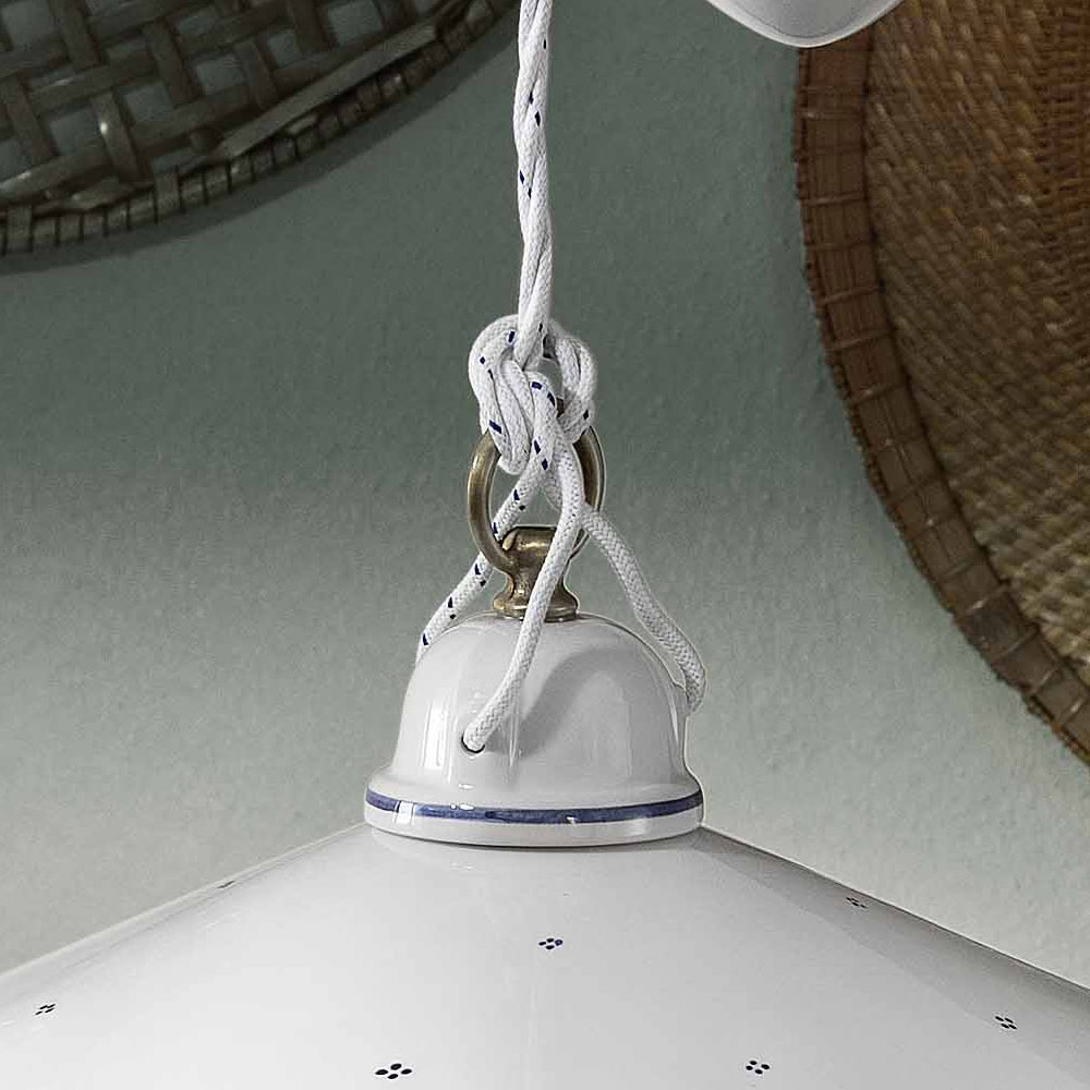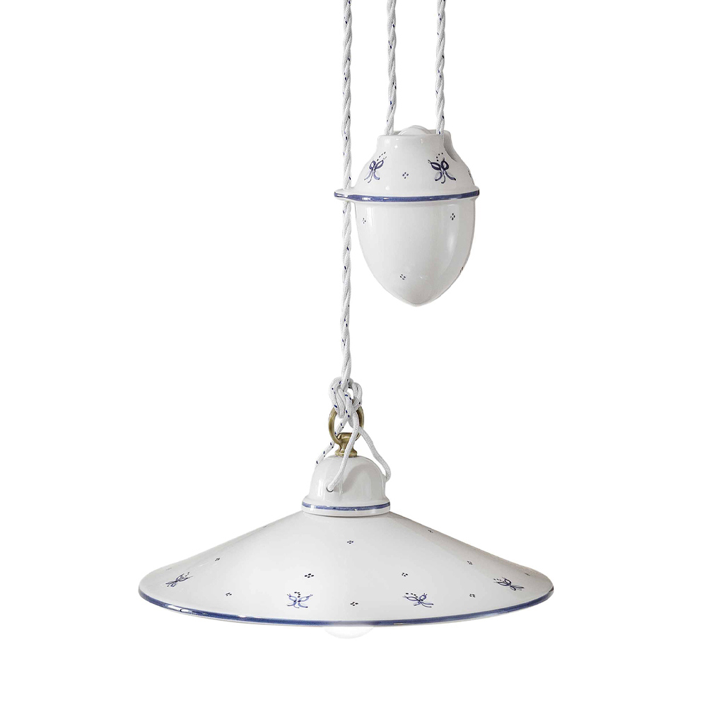 Lampă suspendată cu suișuri și coborâșuri din fier pictat manual și ceramică, vintage 2 mărimi, fabricată în Italia de Ferroluce.