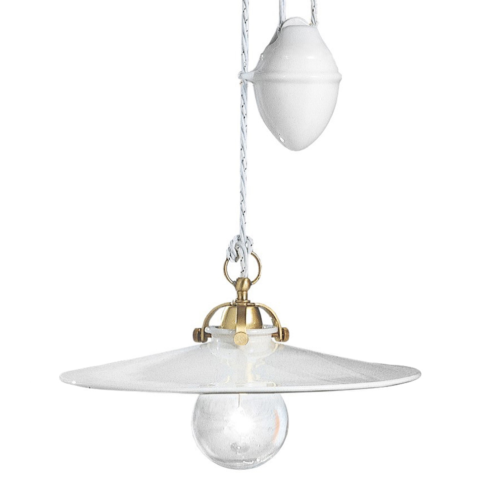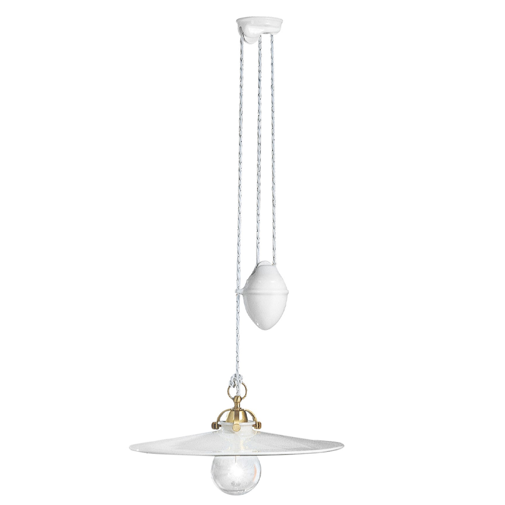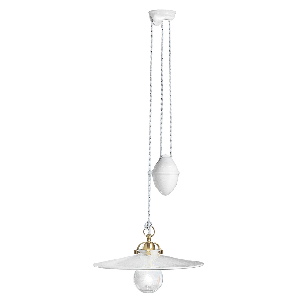 Lampa suspendata sus si jos din fier si ceramica lucioasa, vintage 2 marimi, fabricata in Italia de Ferroluce.
