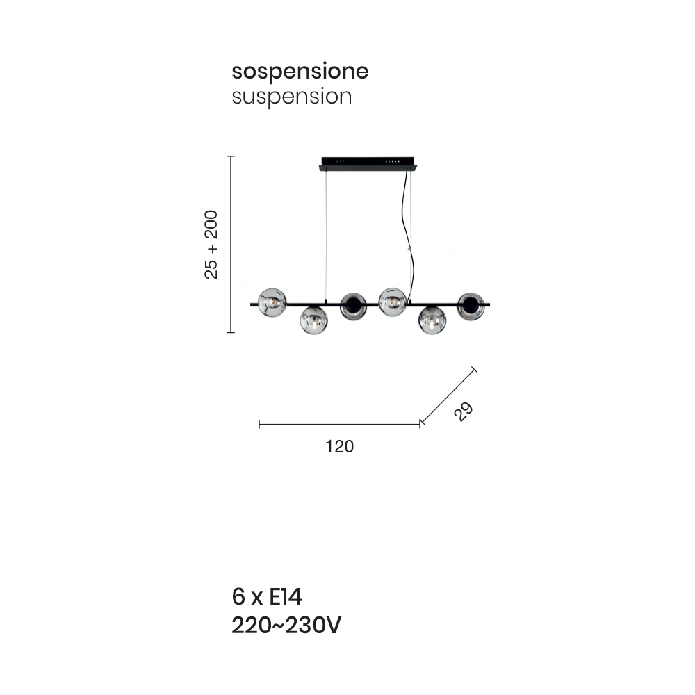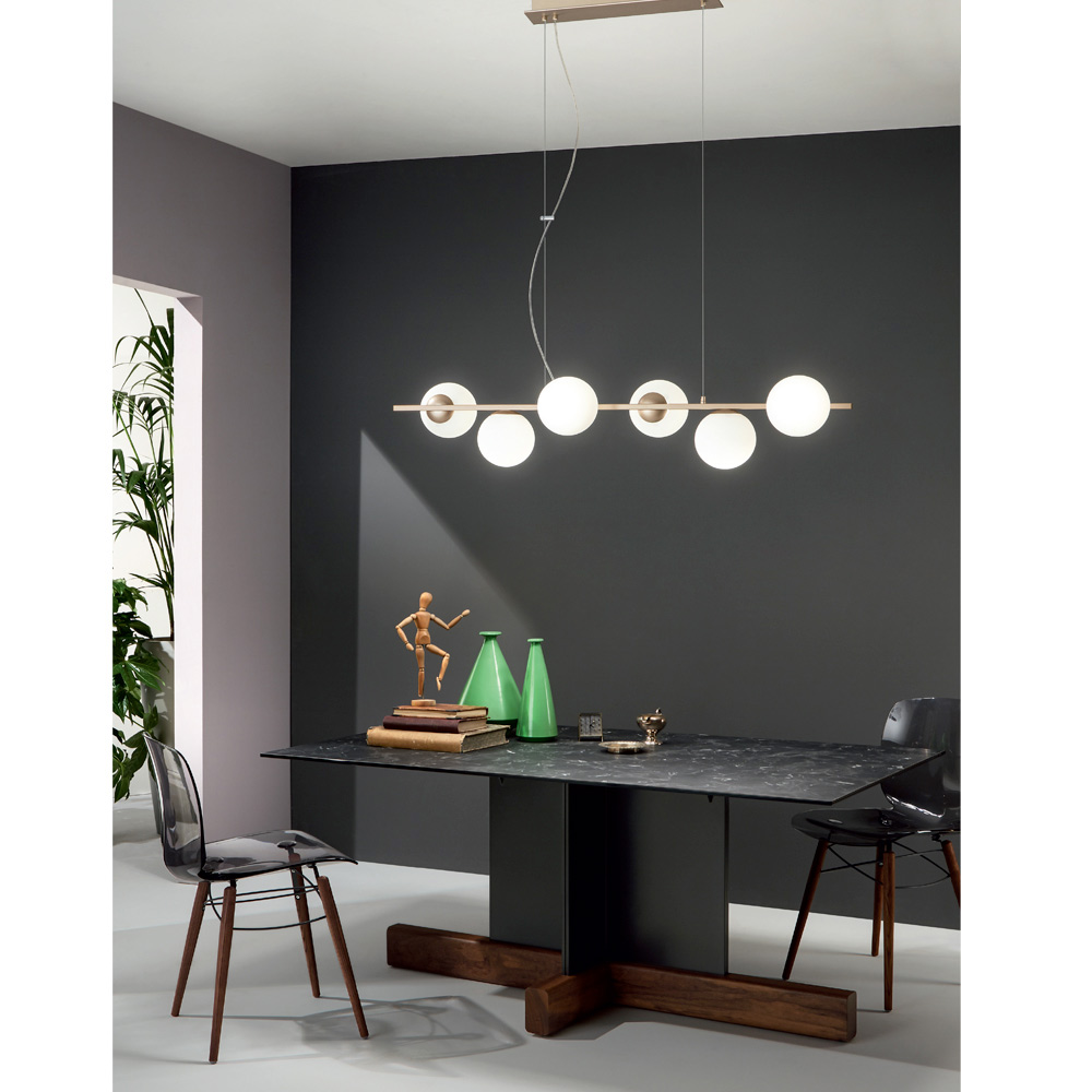 naștere o soluție de amenajare originală și rafinată , capabilă să cucerească centrul atenției în mediile de casă contemporane. Structura sa se dezvolta pe o singura linie, ceea ce o face o solutie deosebit de potrivita pentru iluminarea mesei dumneavoastra in interiorul sufragerii sau bucatariei.