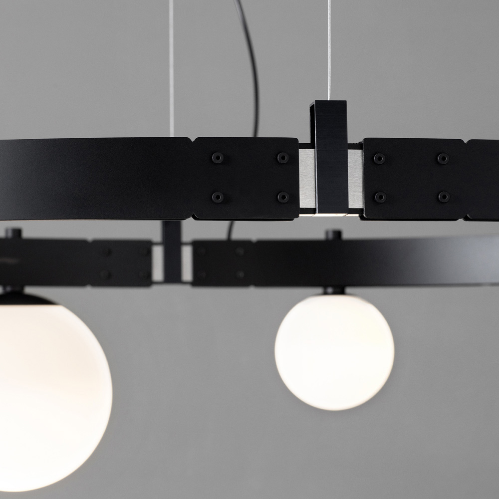Bara portantă ovală amintește de structurile inginerești din trecut, iar structurile modulare electrificate susțin corpuri de iluminat ( sfere de sticlă suflată de două dimensiuni diferite) care pot fi amplasate în cantitate și aranjare liberă, fără utilizarea cablurilor electrice de alimentare, pentru libertate maximă de expresie.