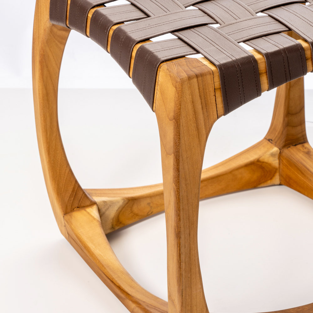 Acest scaun de baie este o adevărată capodopera de design și funcționalitate. Structura sa curbată din lemn masiv de tec demonstrează măiestria pricepută și oferă o stabilitate de neegalat, în timp ce țesutura din piele a scaunului nu numai că adaugă o notă de eleganță, dar asigură și un scaun confortabil. Cu dimensiuni generoase, acest taburet nu servește doar ca șezut, ci și ca suprafață de susținere pentru obiecte personale precum truse de înfrumusețare sau accesorii de baie. Este o piesă versatilă care se potrivește perfect în orice baie, combinând practicitatea și stilul impecabil .