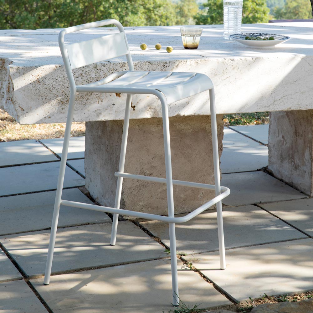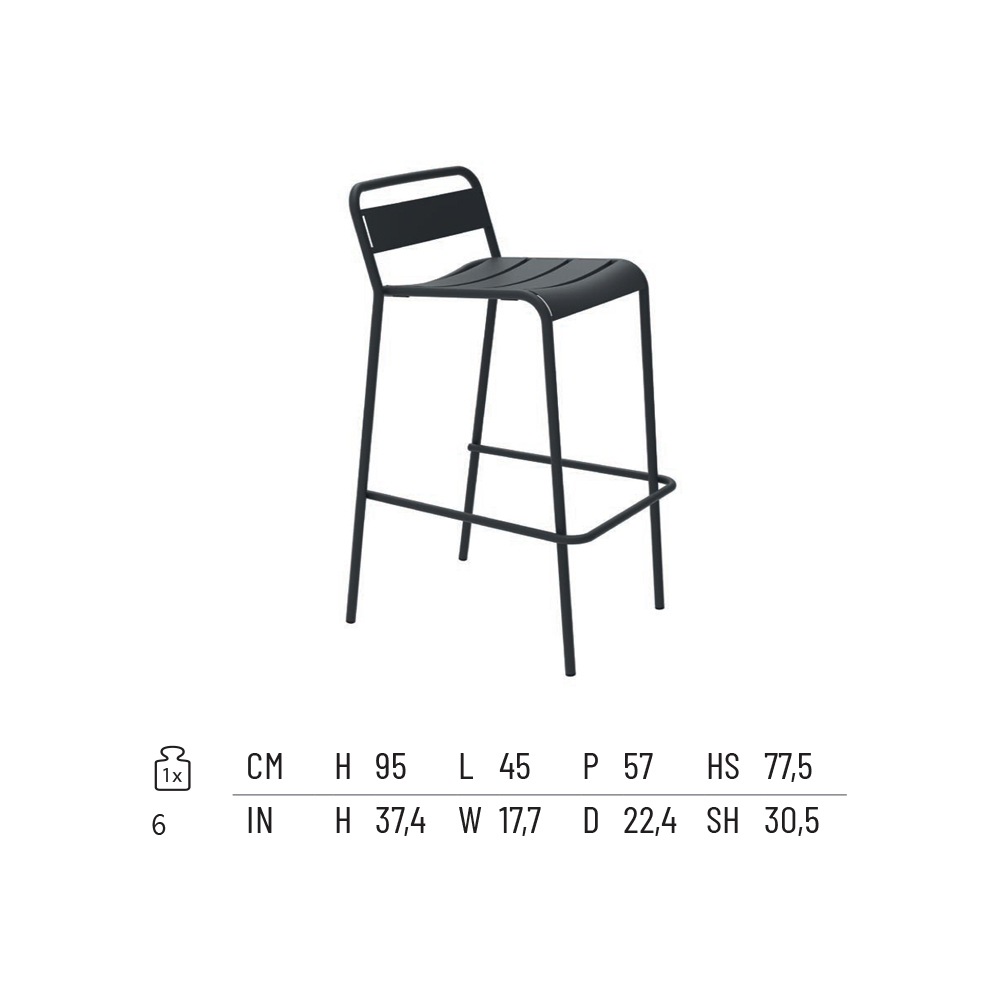 Scaun de exterior stivuibil din fontă galvanizată vopsită în câmp electrostatic, galvanizat colorat, fabricat în Italia.