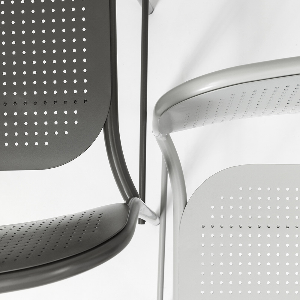 estetica vie si distractiva dar si pentru cei care iubesc un stil mai sobru si mai elegant. Posibilitatea de stivuire ii subliniaza si latura functionala si o face o solutie perfecta si pentru mediile contract precum baruri si restaurante unde este esential sa se poata optimiza spatiile atunci cand fotoliile nu sunt folosite.