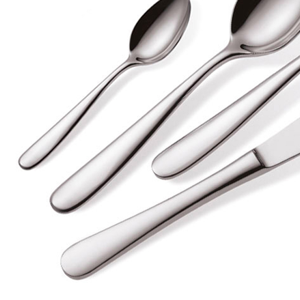 tacâmuri din oțel inoxidabil 18/10 , adică cu 18% crom și 10% nichel, care garantează o rezistență excelentă la coroziune și ușurință în curățare cu un coeficient igienic excelent.