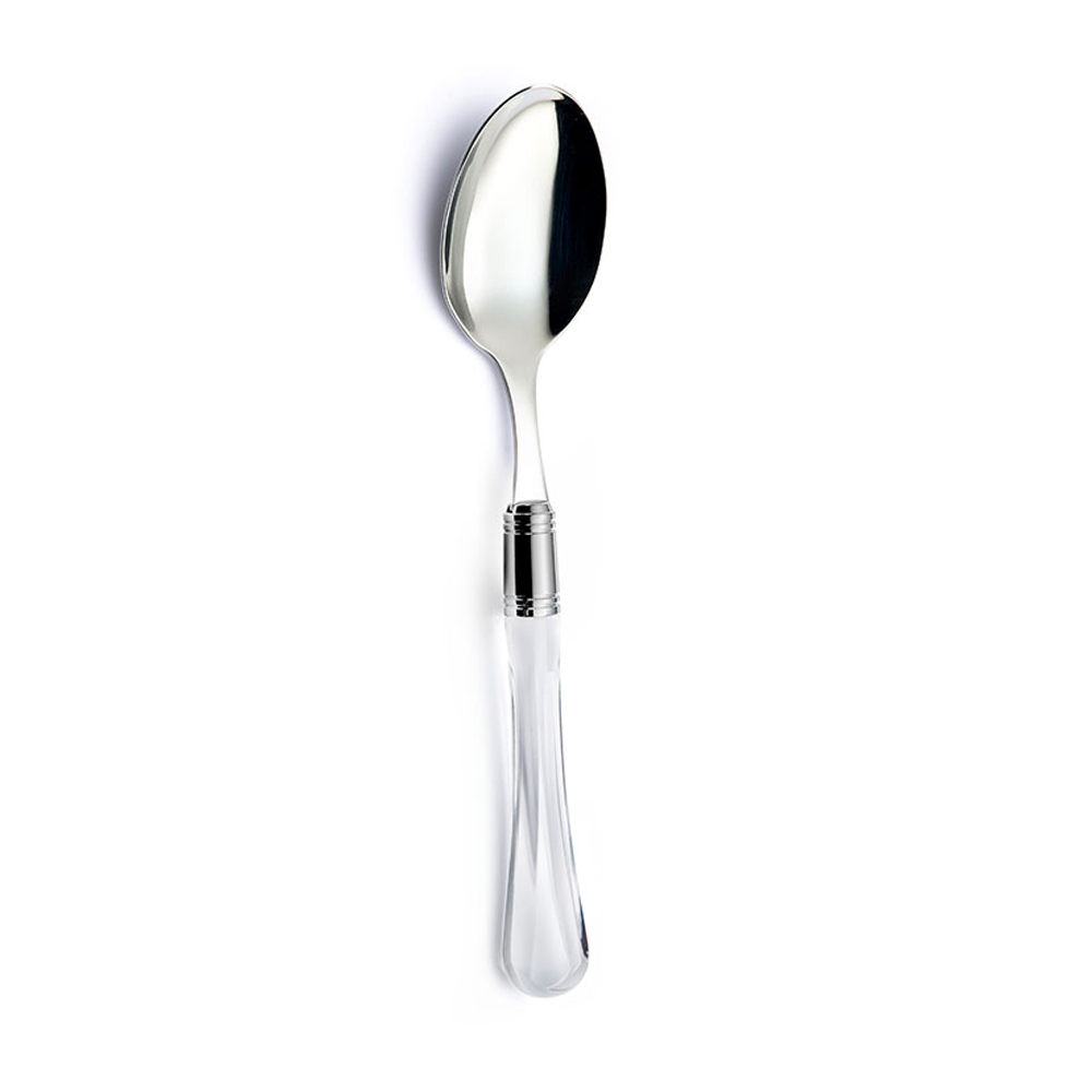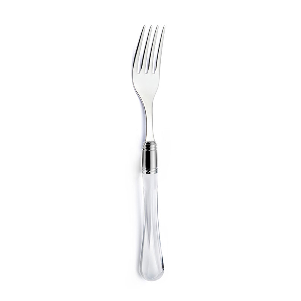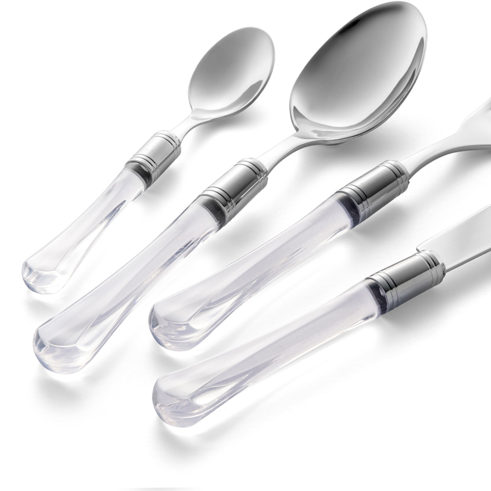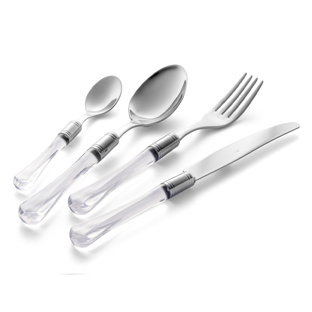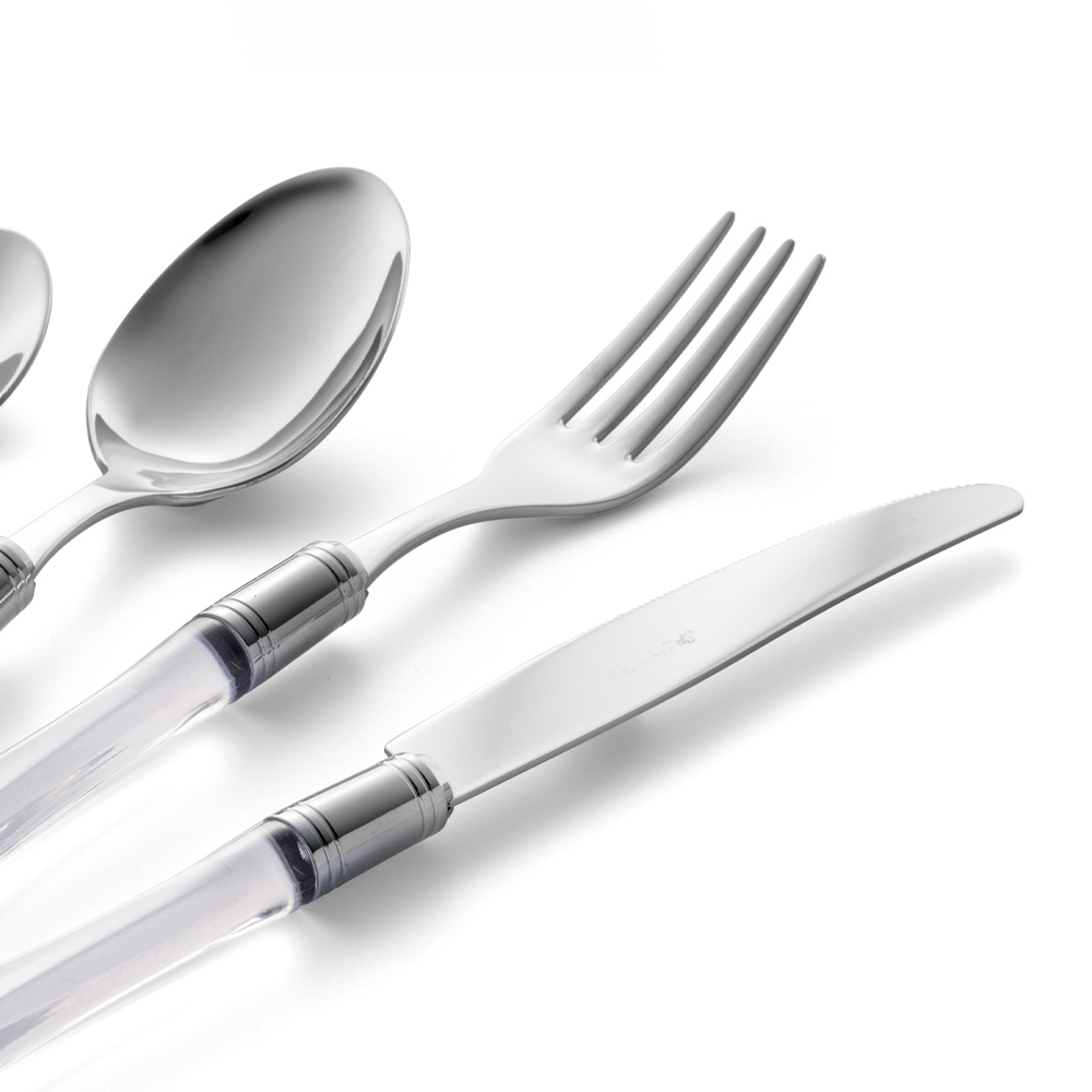 Set de tacâmuri din oțel inoxidabil și mâner din plastic transparent din 24 de piese, fabricat în Italia.