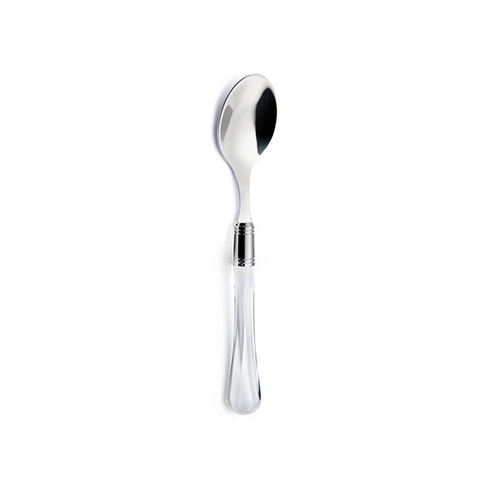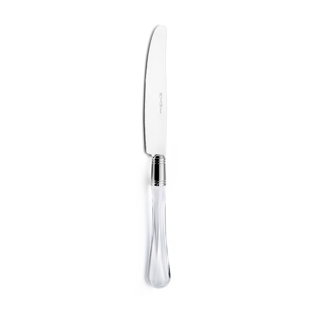 pietrelor prețioase. Inelul cromat joacă un dublu rol: nu numai că ascunde grefa de oțel în mânerul transparent, dar face și tacâmurile la fel de importante ca o adevărată bijuterie.