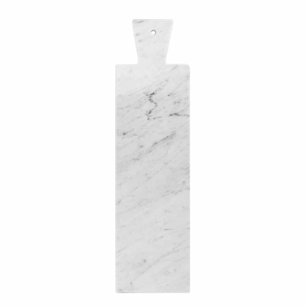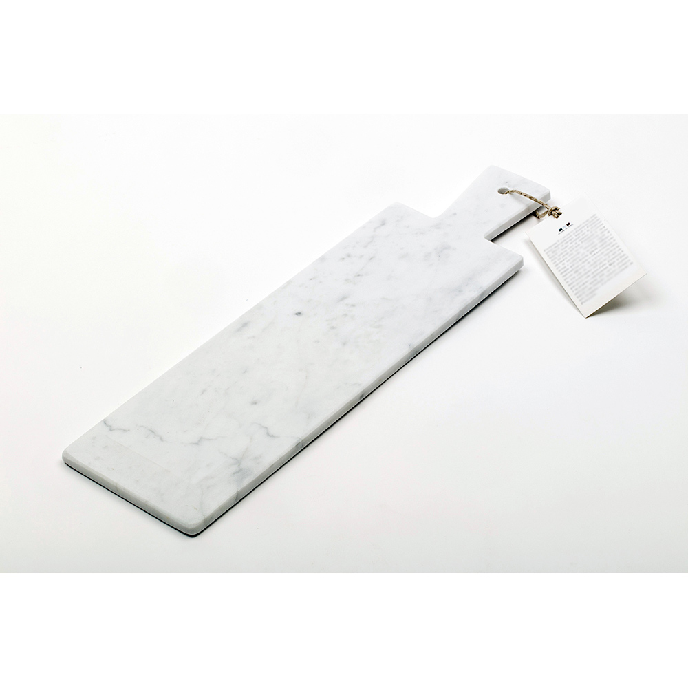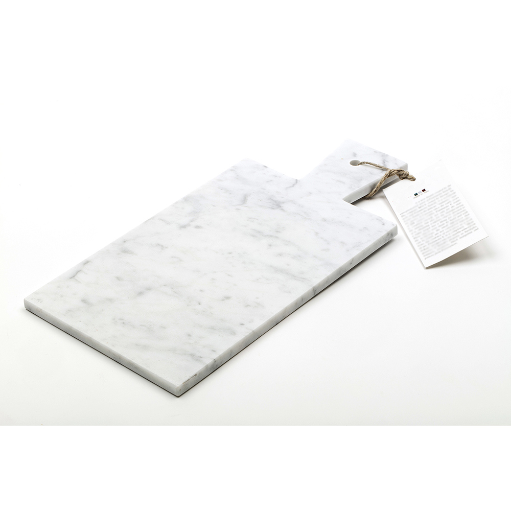 Placă de tăiere dreptunghiulară modernă care se caracterizează prin marmura albă de Carrara calitate înaltă utilizată pentru realizarea sa. Include o gaură practică pe mâner care poate fi utilizată pentru agățare. Trebuie considerată o piesă unică, deoarece fiecare bloc de marmură este diferit în vene și nuanțe.