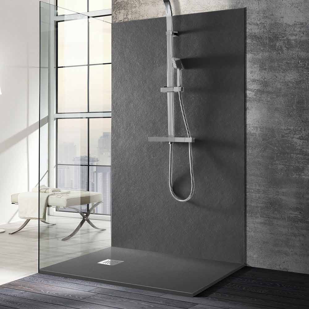 Cadita de dus moderna 140x70 din rasina efect piatra cu grila din otel.