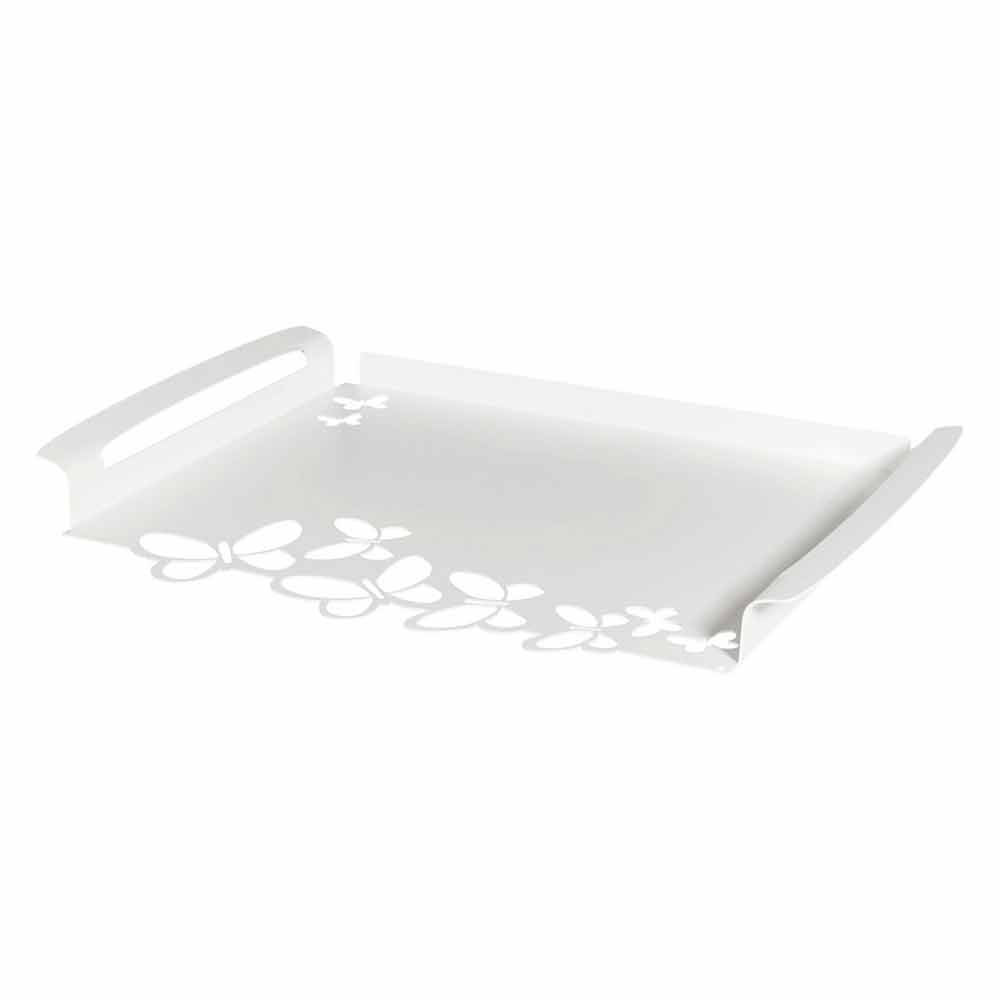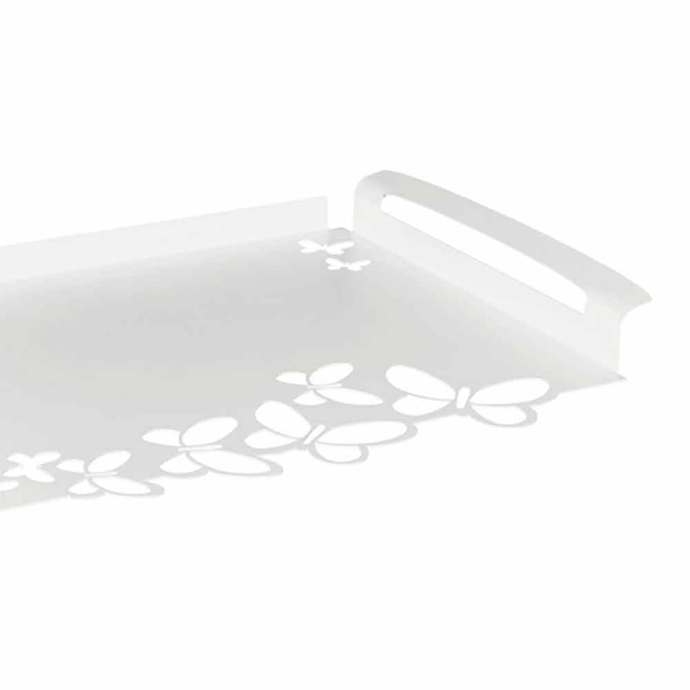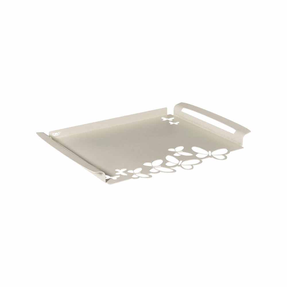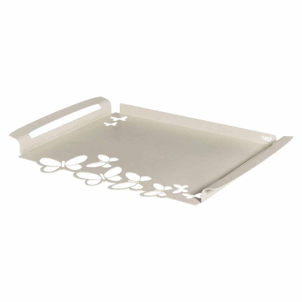 Tavă de servire dreptunghiulară modernă, din fier alb, bej sau fildeș, fabricată manual în Italia.