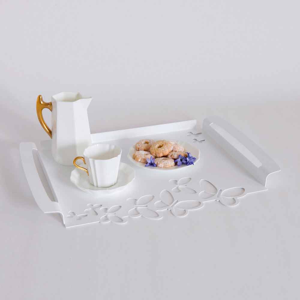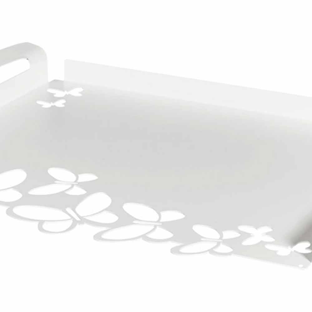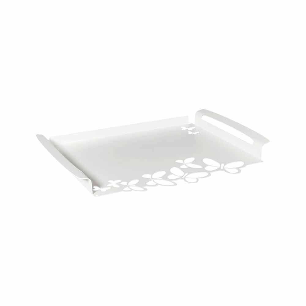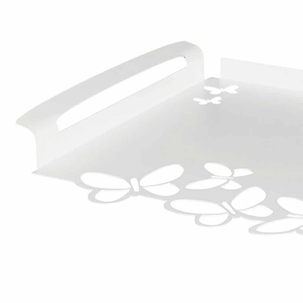 Tavă de servire dreptunghiulară modernă, din fier alb, bej sau fildeș, fabricată manual în Italia.