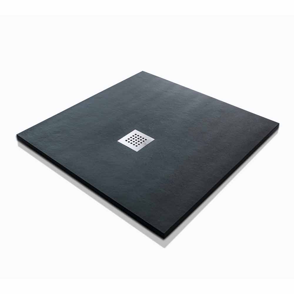 Tăviță de duș pătrată 90x90 în finisaj efect piatră cu grătar de oțel.