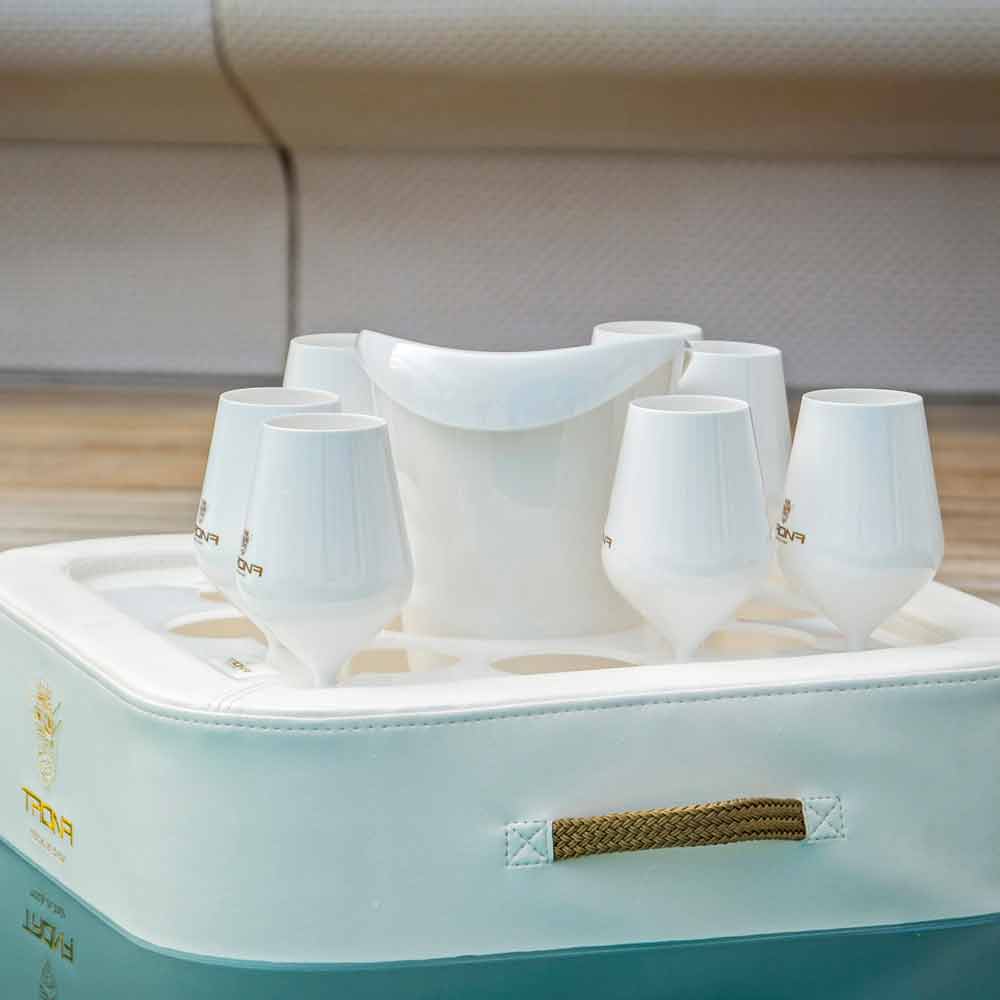 Trona este complet cu un coș de găleată de gheață și un set de 8 pahare de policarbonat.