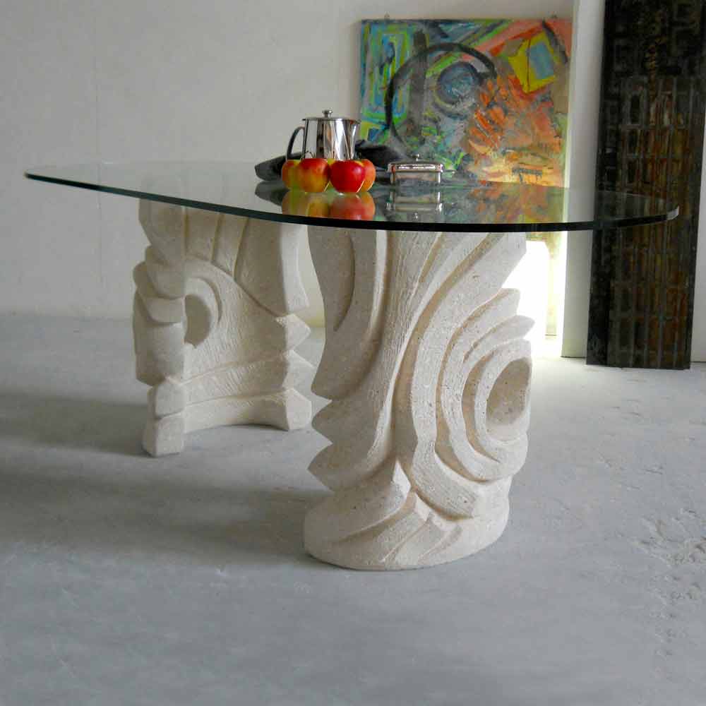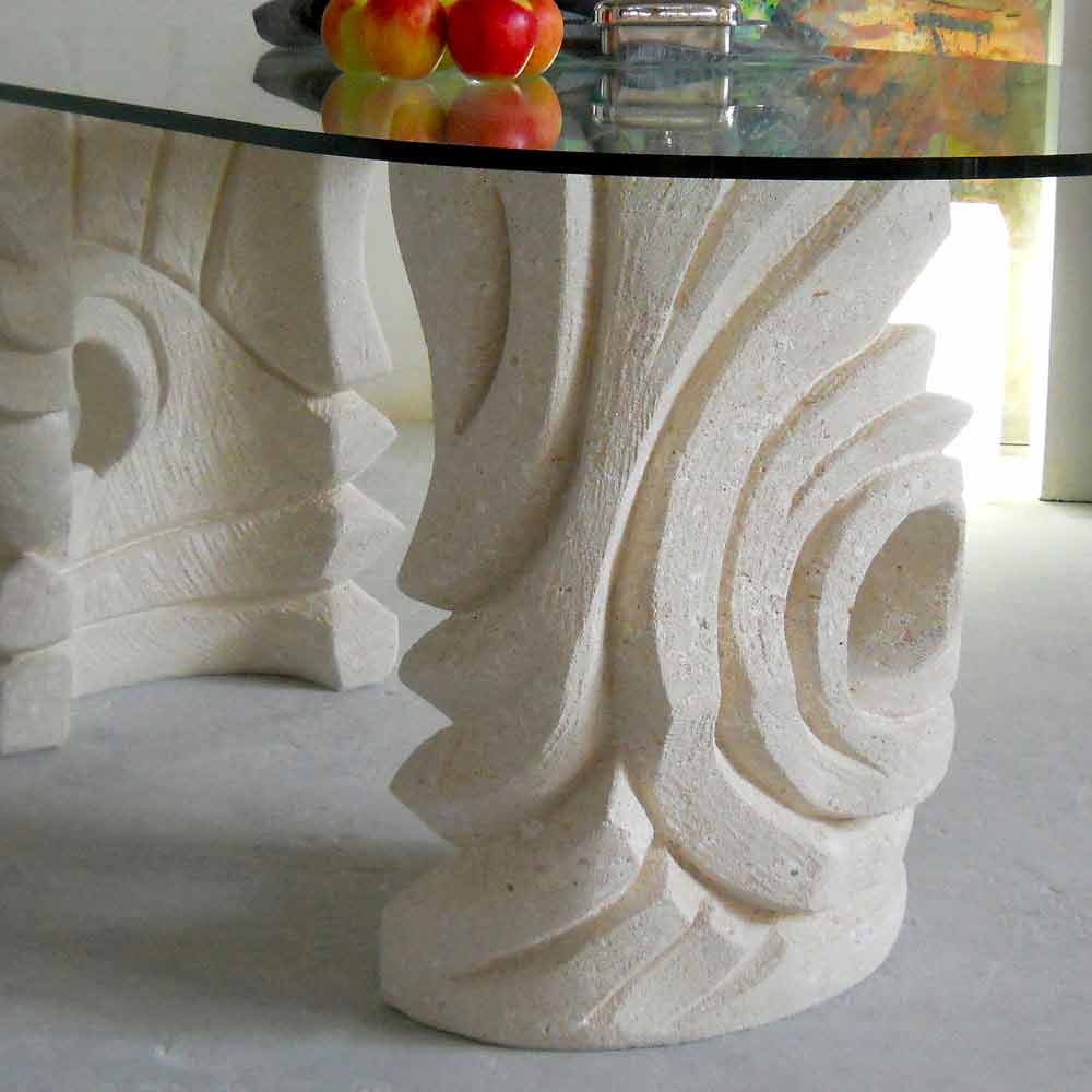 masă ovală din piatră și Furii moderne de design de cristal
