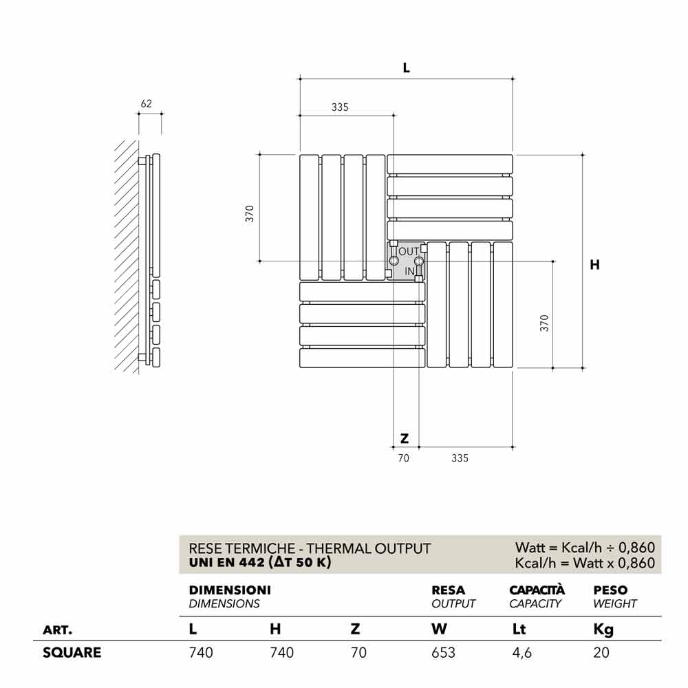 Radiator hidraulic de design pătrat fabricat în Italia Square de Scirocco H