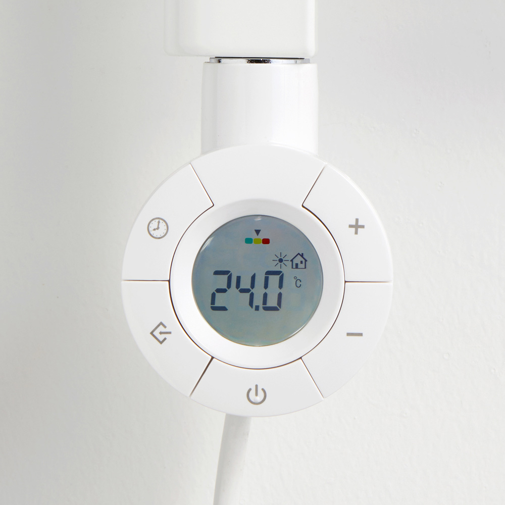 - Complet cu control al temperaturii, dată și oră, selectare mod (Eco, Fereastră deschisă, Confort, Antiîngheț, Noapte, cronometru de 2 ore) și indicator de pornire.