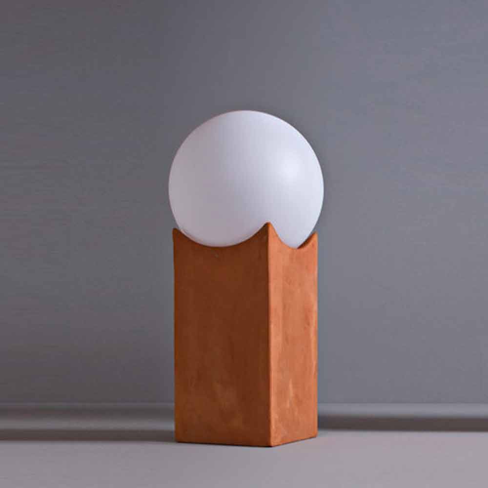 Seria ATLAS propune o reinterpretare a felinarului de exterior, jucata pe contrastul dintre rotunjimea sferei iluminatoare si angularitatea bazei de teracota.