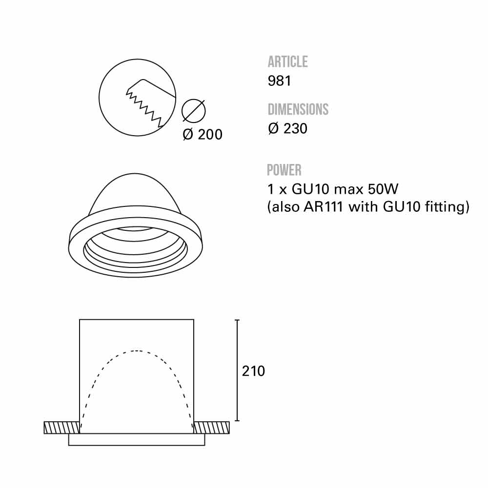 Becuri : 1x GU10 max 50W - nu sunt incluse