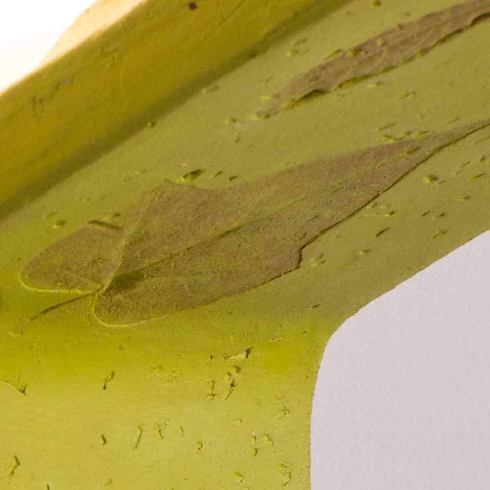 Designul acestui decor este realizat folosind frunze reale presate manual direct în turnat.
