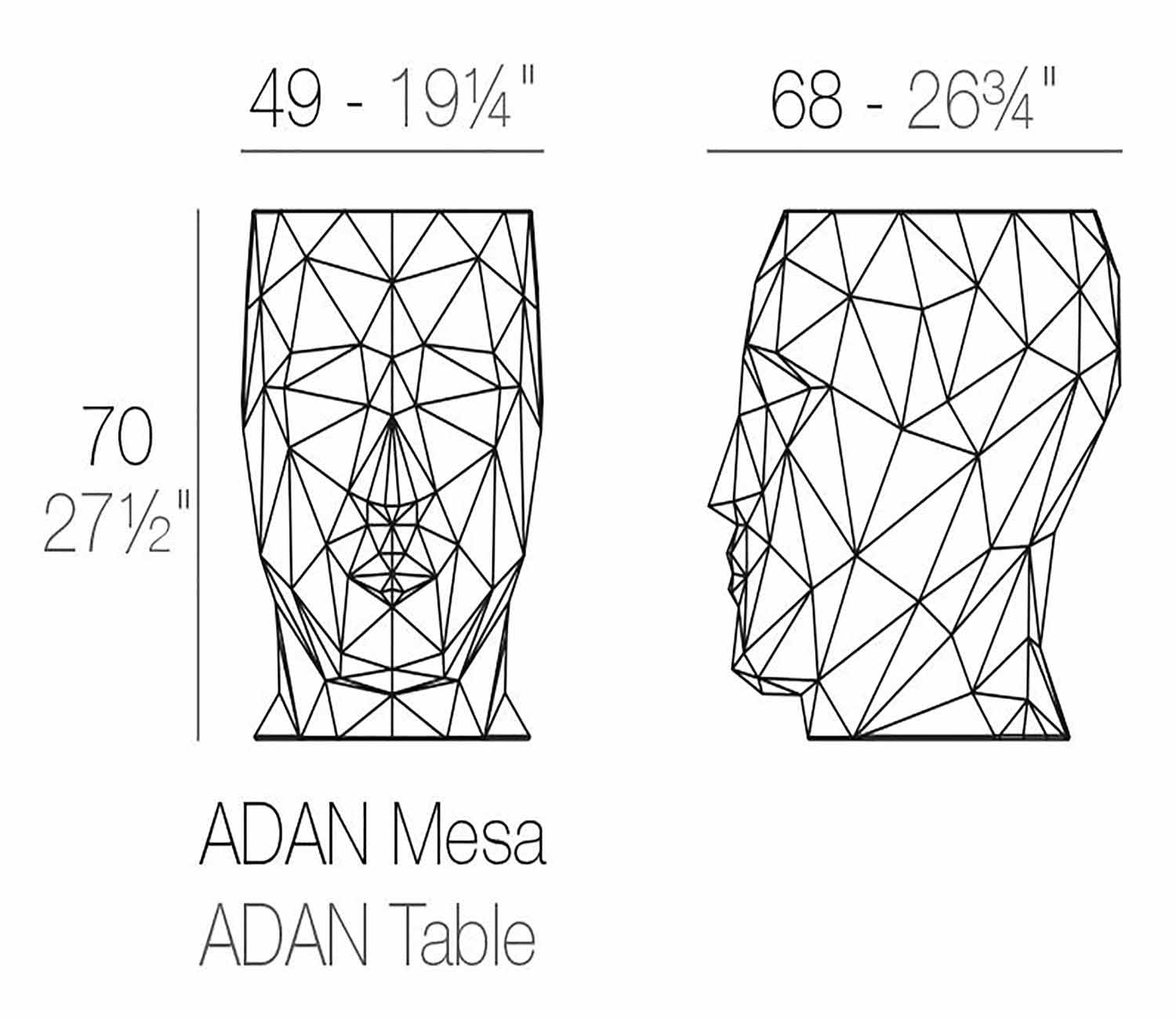 Colecția Adan a fost proiectată de designerul Teresa Sapey, cu această linie ne surprinde, deoarece obiectele au forma unei fețe, iar liniile amintesc de un diamant. Colecția cu o mare personalitate, mai degrabă decât cu obiecte, sunt piese de arhitectură multifuncțională. Acestea sunt obiecte de stil de viață care creează o senzație, se adaptează la orice stil și sunt fabricate din materiale care permit atât utilizarea externă, cât și cea internă.