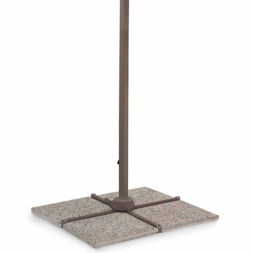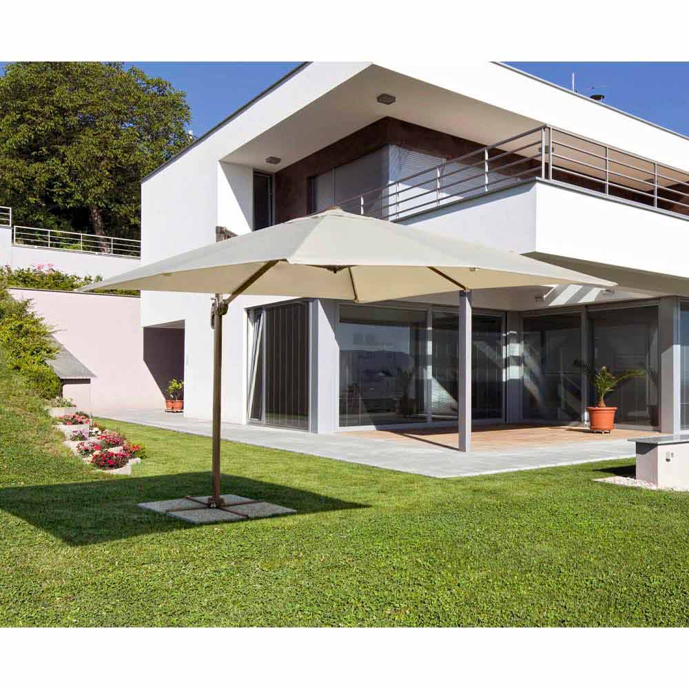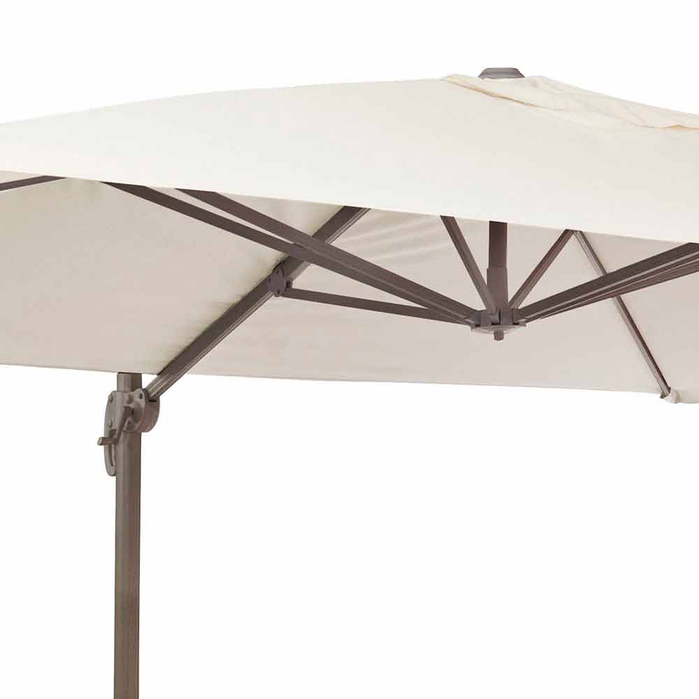 Structură din aluminiu acoperit cu pulbere (poliester). Stâlp de 53x77mm, stâlp suspendat de 25x40mm, 8 nervuri de 14x24mm. Țesătură din poliester natural 200gr / m2 cu acoperire pa (poliamidă). Baza transversală din oțel . Pol rotativ manual la 360 °.