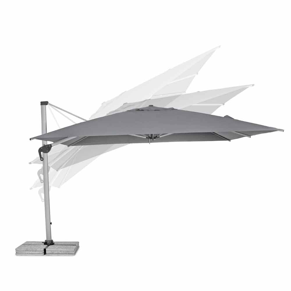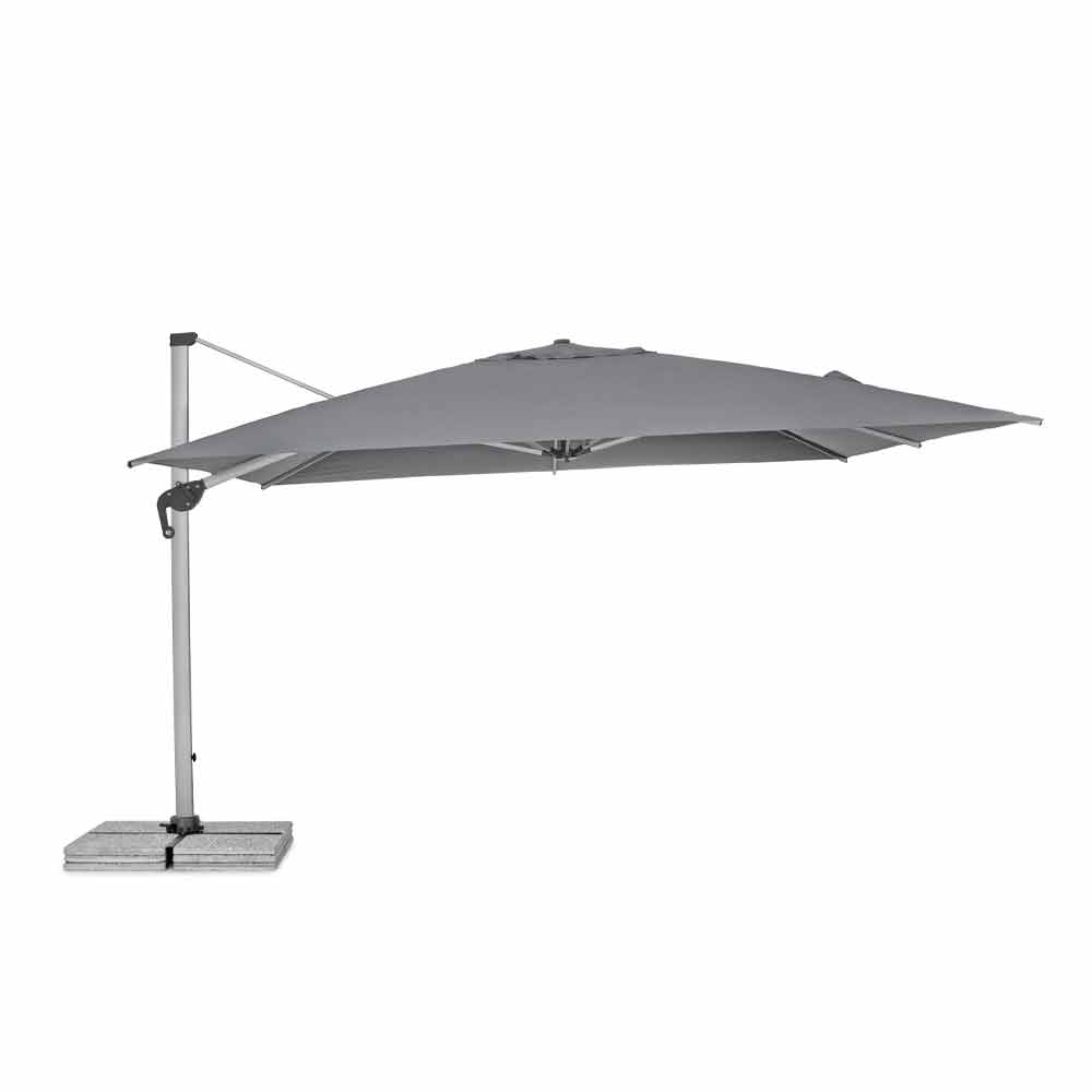 Umbrelă de grădină 4x4 din poliester gri și aluminiu anodizat.