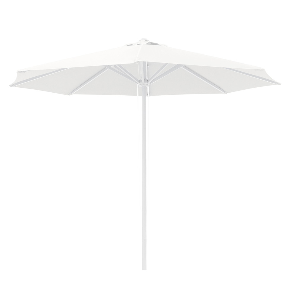 Umbrela de exterior cu structura din aluminiu si material acrilic.