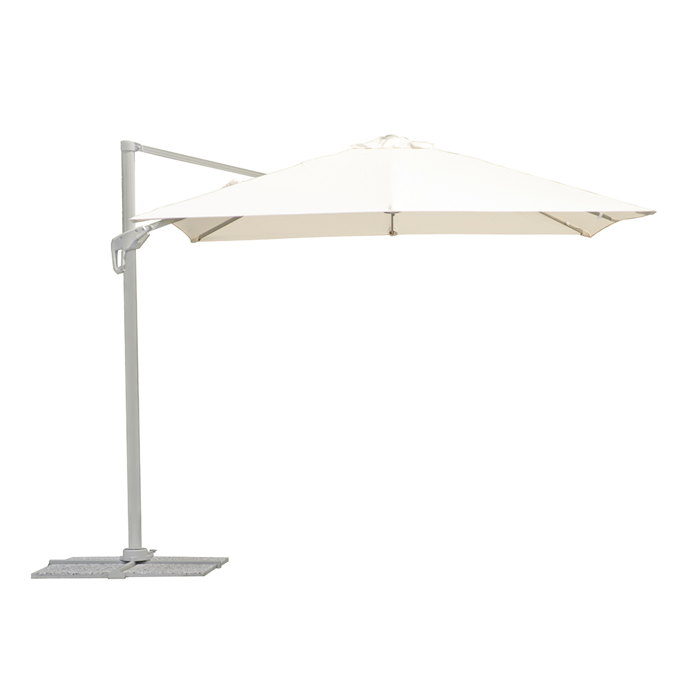 Echipat cu un sistem anti-vânt și o bază metalică în cruce , garantează stabilitatea chiar și în zilele cu cel mai vânt. Este perfect pentru grădini, terase și spații de lângă piscină, precum și pentru zonele exterioare din restaurante, hoteluri sau lounge baruri.