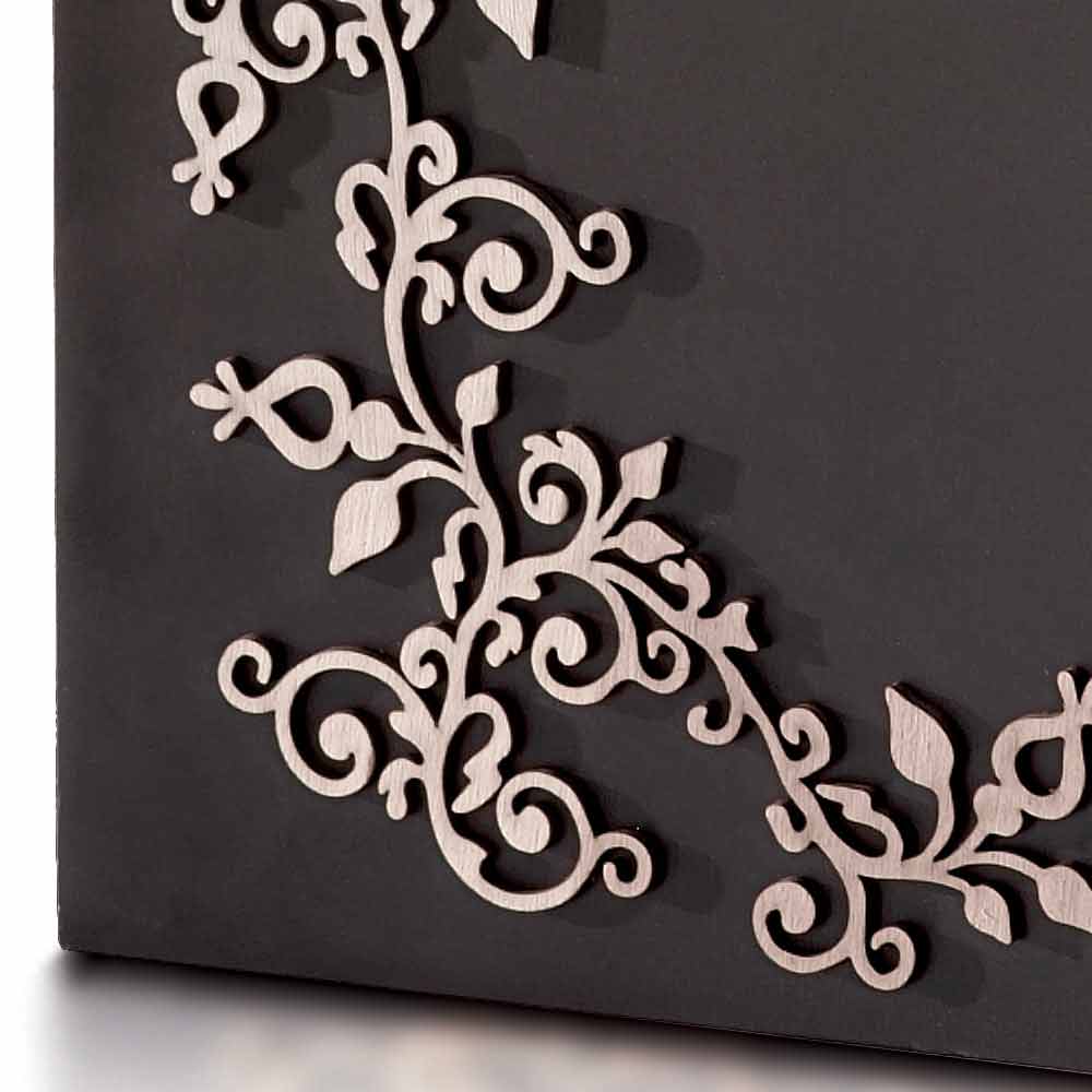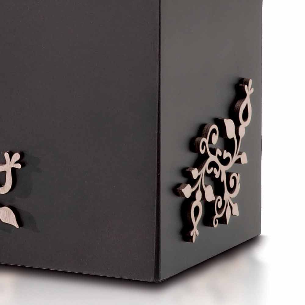 Umbrelă din lemn de culoare închisă sau albă, cu decorațiuni elegante contrastante decupate cu laser, design dreptunghiular modern și realizată în Italia.
