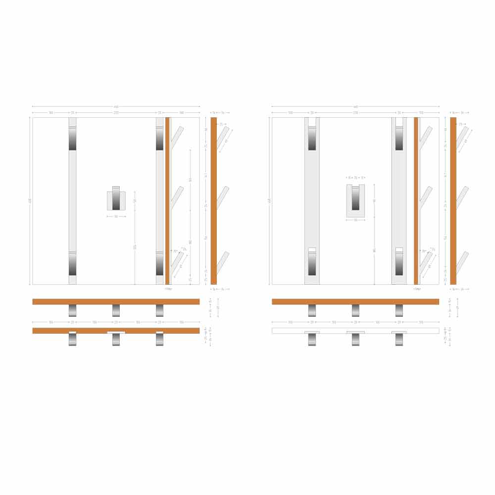 panou de perete din lemn de tec cu 5 umerașe de corian alb constituie un