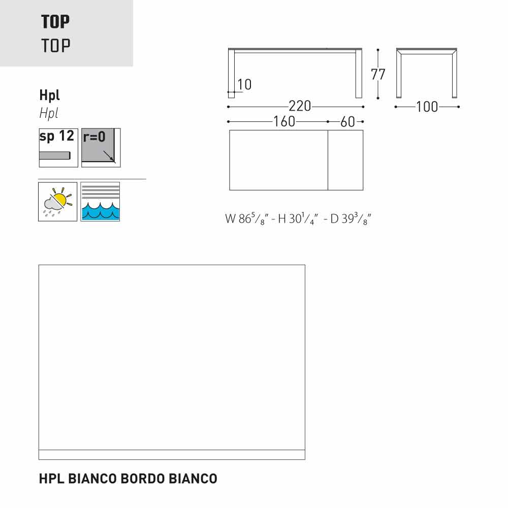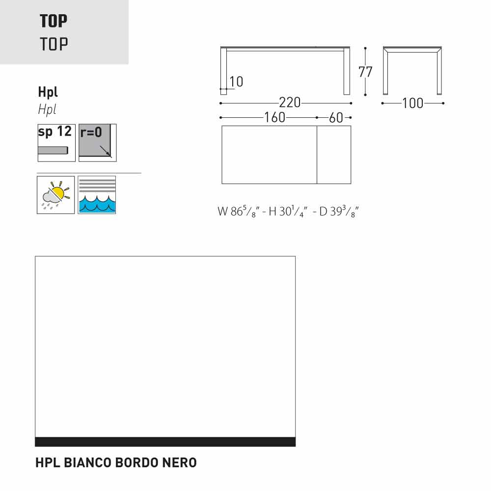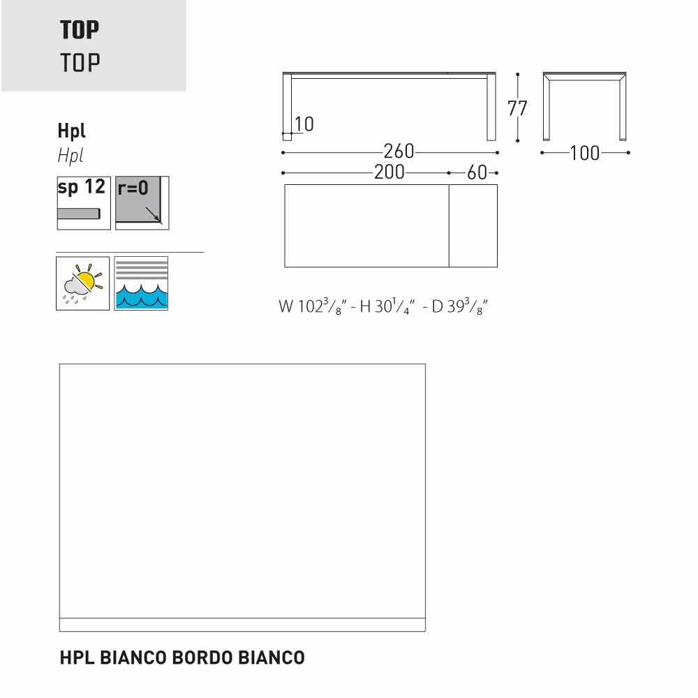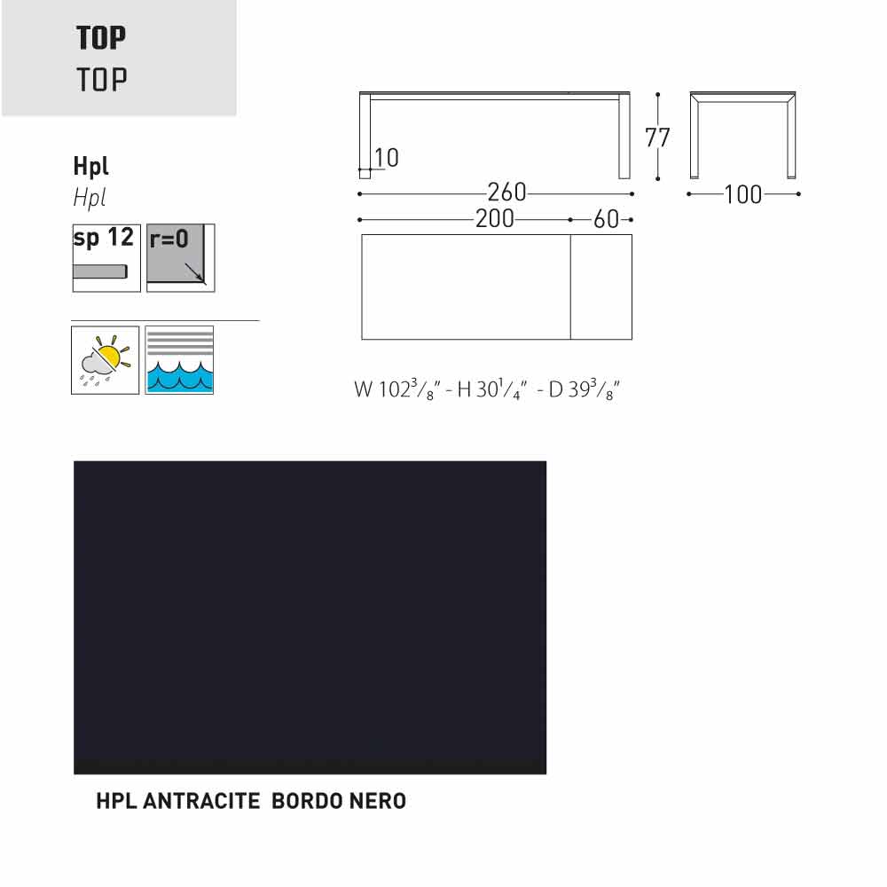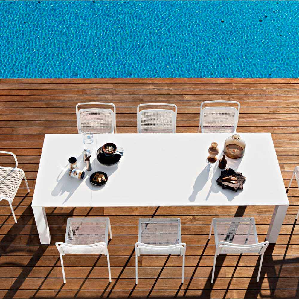 Tabelul Dolmen prezintă o structură din aluminiu vopsit si HPL, grosime 12 mm. Este un tabel cu un sistem de extensie foarte eficient în ceea ce privește mărimea, dar și pentru ușurința de mișcare. Cu un design versatil, acesta poate fi utilizat în aer liber, cum ar fi grădină, terasa, piscina, și mediile de interior.