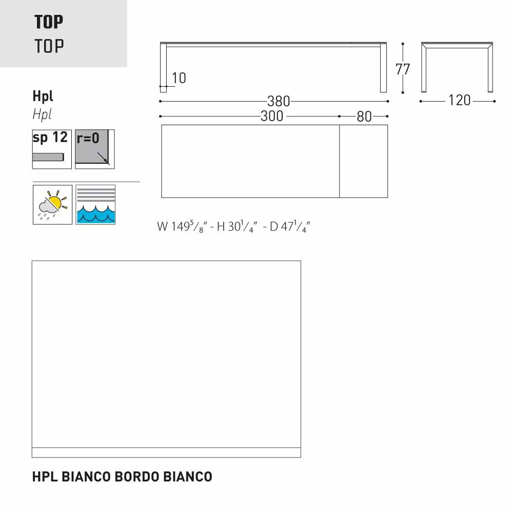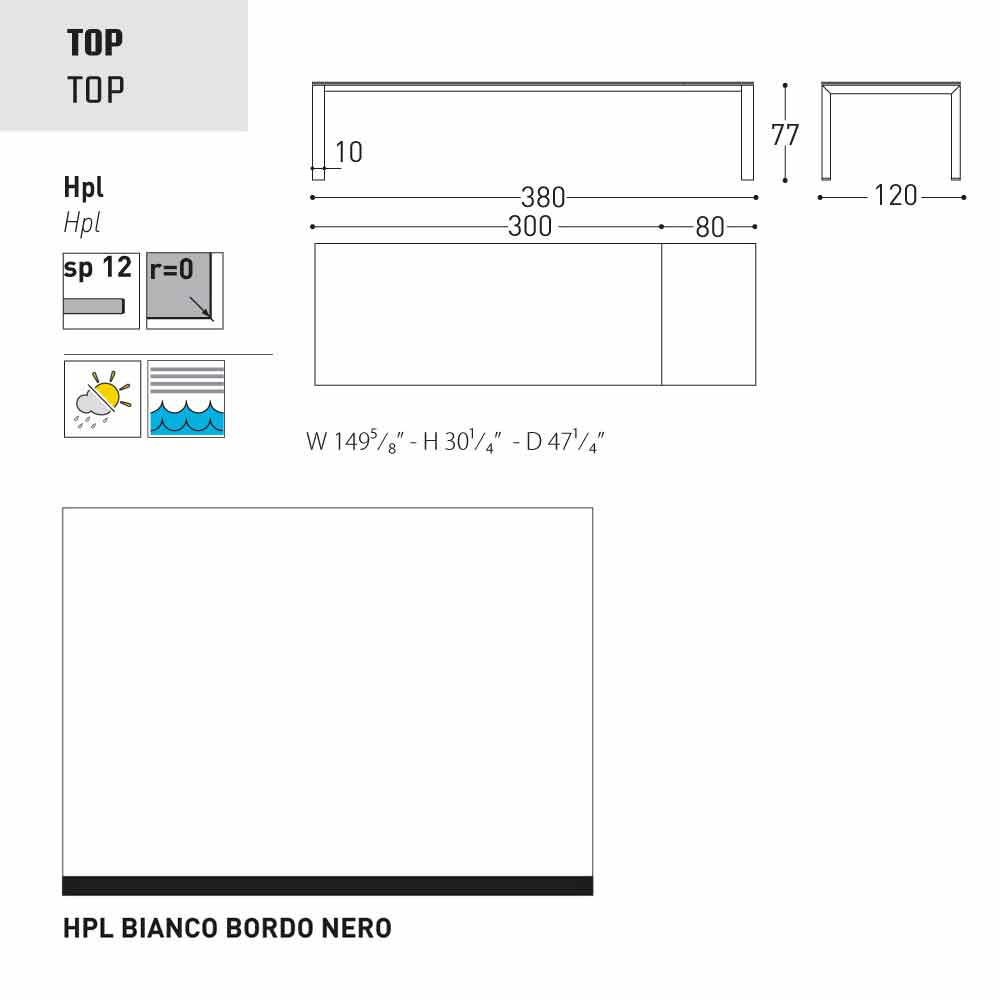 - 120 x 300/380 x H 77 cm; 1 extensie 80 cm