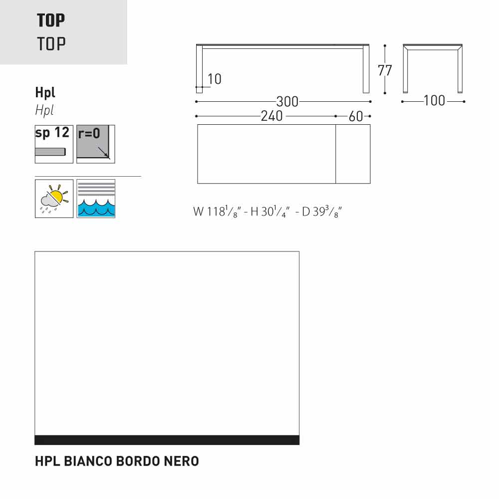 - 100 x 240/300 x H 77 cm; 1 extensie de 60 cm