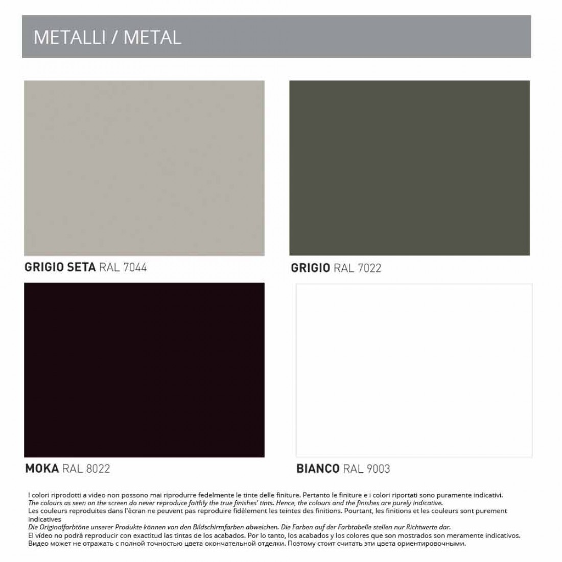 NB Colecția poartă lumina soarelui și ploaie. Se recomandă ca o întreținere periodică și o atenție deosebită protecției articolelor în cazul unor condiții meteorologice nefavorabile (gheață, grindină, schimbările de temperatură, umiditate, persistente, arșiță sau frig extrem). Lungimea și integritatea acestor elemente depinde de grija cu care sunt deținute. Pentru aluminiu și oțel (43, 304Ep, 316), deși protejate prin tratamente si finisaje adecvate pentru utilizare în exterior, este evita critica apă stătătoare în interiorul produsului în sine. Toate elementele sunt în fapt, tehnicile de foraj necesare pentru aplicarea de tratamente de protecție și finisaje. Introducerea apei în aceste găuri și stagnare poate provoca coroziune la părțile interioare ale tuburilor.