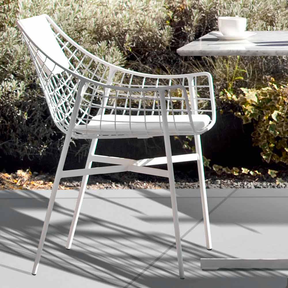 Setul de vară este un fotoliu destul de exterior, caracterizat printr-o structură portantă în oțel alb cu pulbere; scaunul și spătarul scaunului în țesătură.