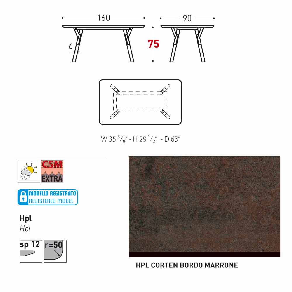 Caracteristici: HPL laminate de înaltă presiune. Ele constau din mai multe straturi de hârtie (70%), impregnate cu rășini termorigide (30%) și compactate prin acțiunea combinată a căldurii (aproximativ 150 de grade) și presiune ridicată (mai mare de 7 MPa) timp de aproximativ 45-50 minute. Rezultatul este o densitate stabilă, non-reactive, non-poros și înaltă, cu caracteristici fizice și chimice ale rezistență mecanică ridicată (excursiilor controlată termic +80, -40 grade, pe timp limitat mai puțin de 30 de secunde la temperaturi extreme), expunerea la lumină și expunerea la schimbările de temperatură, chiar și în mediul marin.