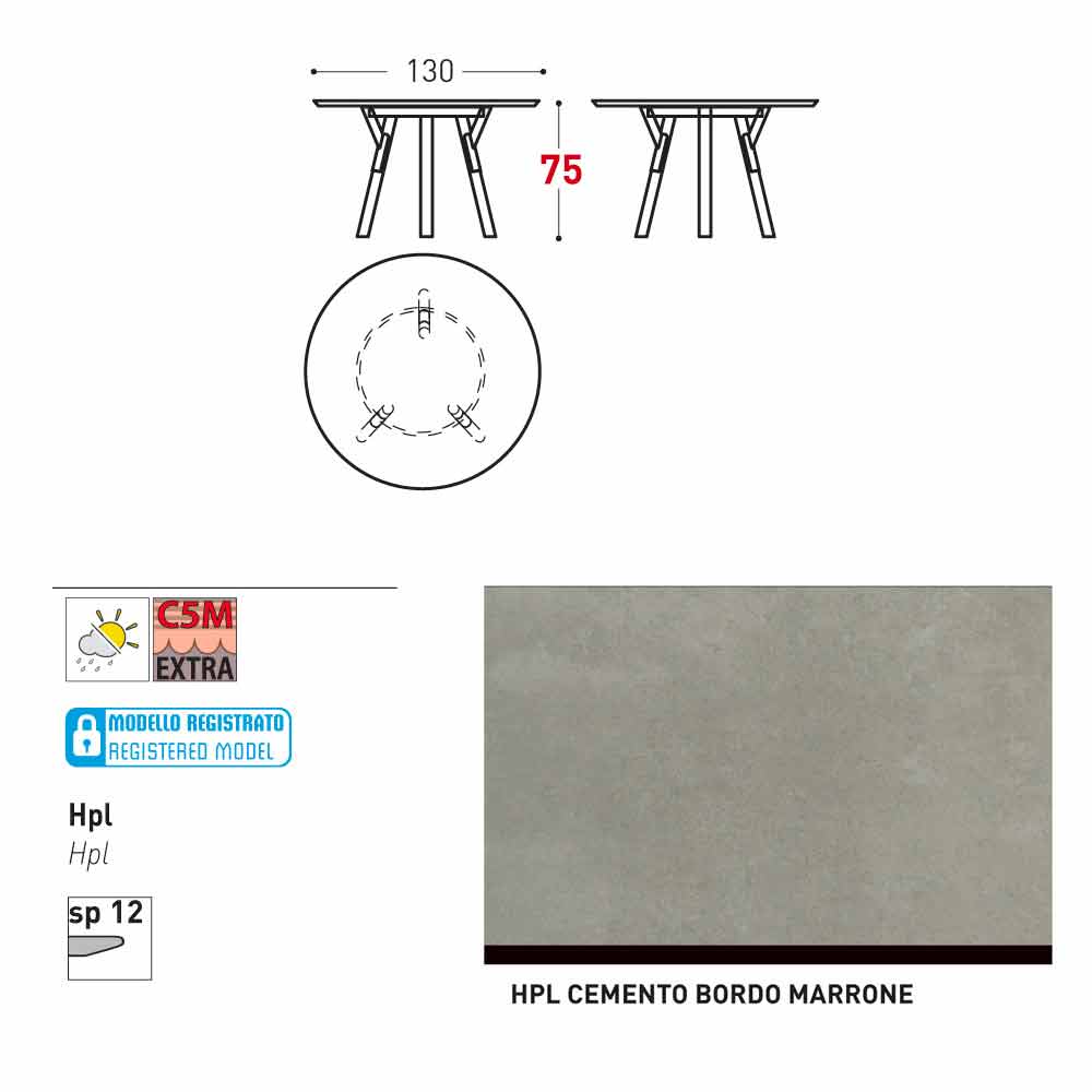 Caracteristici: HPL laminate de înaltă presiune. Ele constau din mai multe straturi de hârtie (70%), impregnate cu rășini termorigide (30%) și compactate prin acțiunea combinată a căldurii (aproximativ 150 de grade) și presiune ridicată (mai mare de 7 MPa) timp de aproximativ 45-50 minute. Rezultatul este o densitate stabilă, non-reactive, non-poros și înaltă, cu caracteristici fizice și chimice ale rezistență mecanică ridicată (excursiilor controlată termic +80, -40 grade, pe timp limitat mai puțin de 30 de secunde la temperaturi extreme), expunerea la lumină și expunerea la schimbările de temperatură, chiar și în mediul marin.