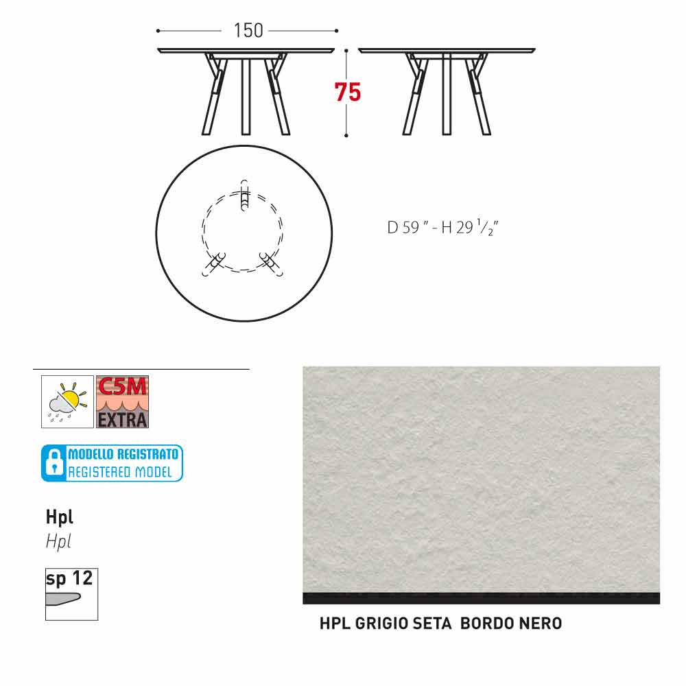 NB. Colecția poartă soare și ploaie. Se recomandă ca o întreținere periodică și o atenție deosebită protecției articolelor în cazul unor condiții meteorologice nefavorabile (gheață, grindină, schimbările de temperatură, umiditate, persistente, arșiță sau frig extrem). Lungimea și integritatea acestor elemente depinde de grija cu care sunt deținute. Pentru aluminiu și oțel (43, 304Ep, 316), deși protejate prin tratamente si finisaje adecvate pentru utilizare în exterior, este evita critica apă stătătoare în interiorul produsului în sine. Toate elementele sunt în fapt, tehnicile de foraj necesare pentru aplicarea de tratamente de protecție și finisaje. Introducerea apei în aceste găuri și stagnare poate provoca coroziune la părțile interioare ale tuburilor.
