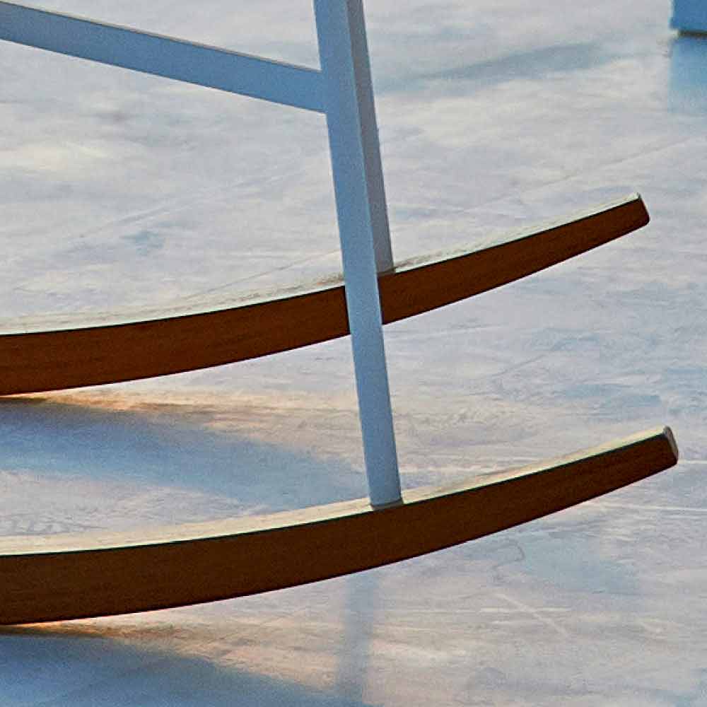 Setul de vară este un scaun încântător de balansoar în aer liber, caracterizat printr-o structură portantă din oțel acoperit cu pudră albă și un diapozitiv din lemn masiv natural iroko.