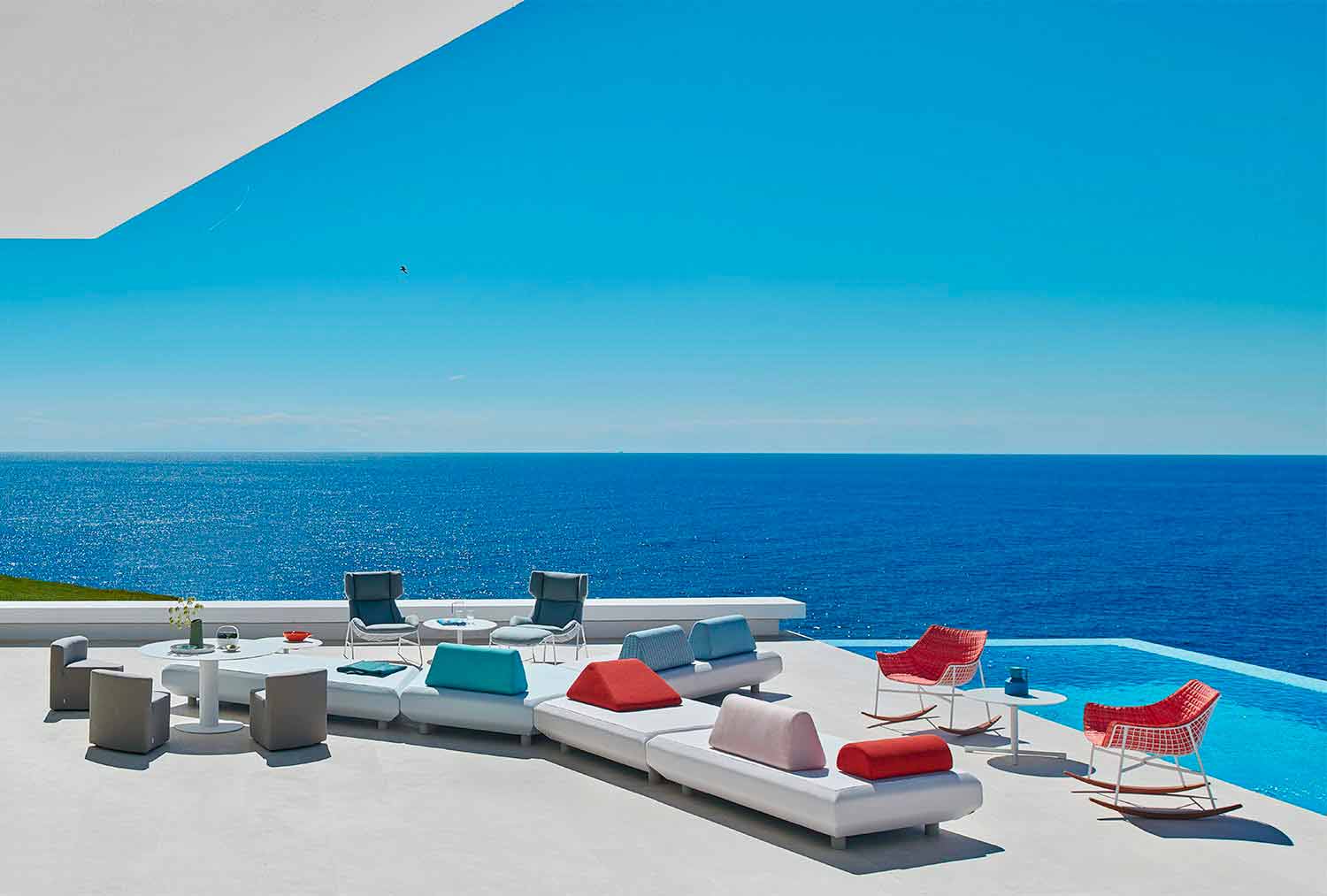 Datorită confortului întregii perne într-o țesătură care o acoperă și cu designul ultramodern, aceasta va fi perfectă pentru decorarea mediilor în aer liber, cum ar fi terase, piscine, grădini; dar găsește o plasare perfectă și în interior, în zona de living.