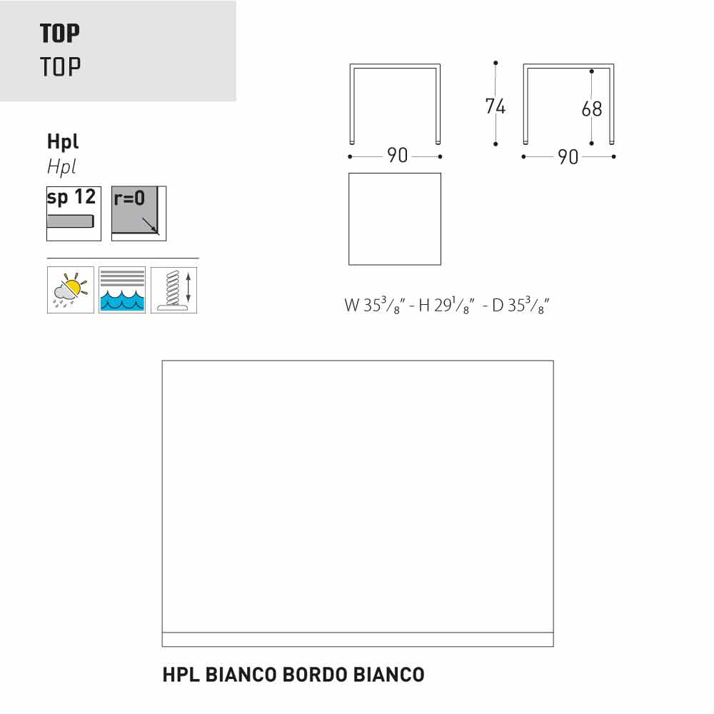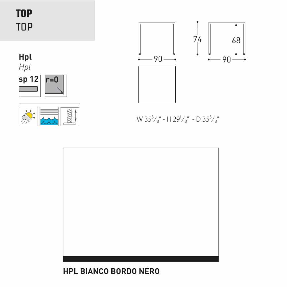 - 90x90xH74 cm