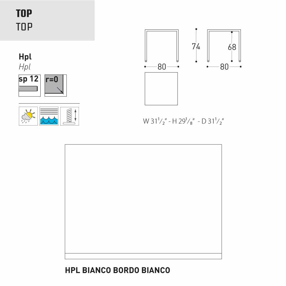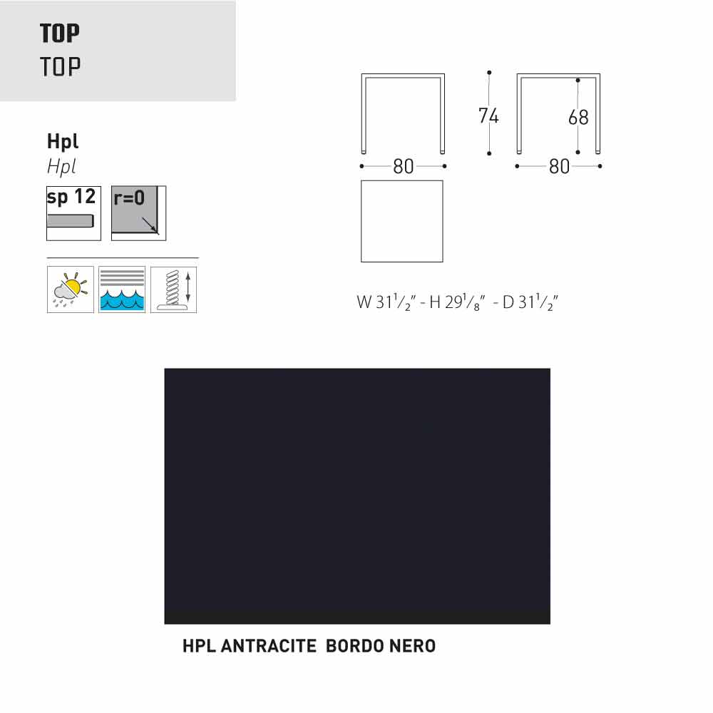 - 80x80xH74 cm