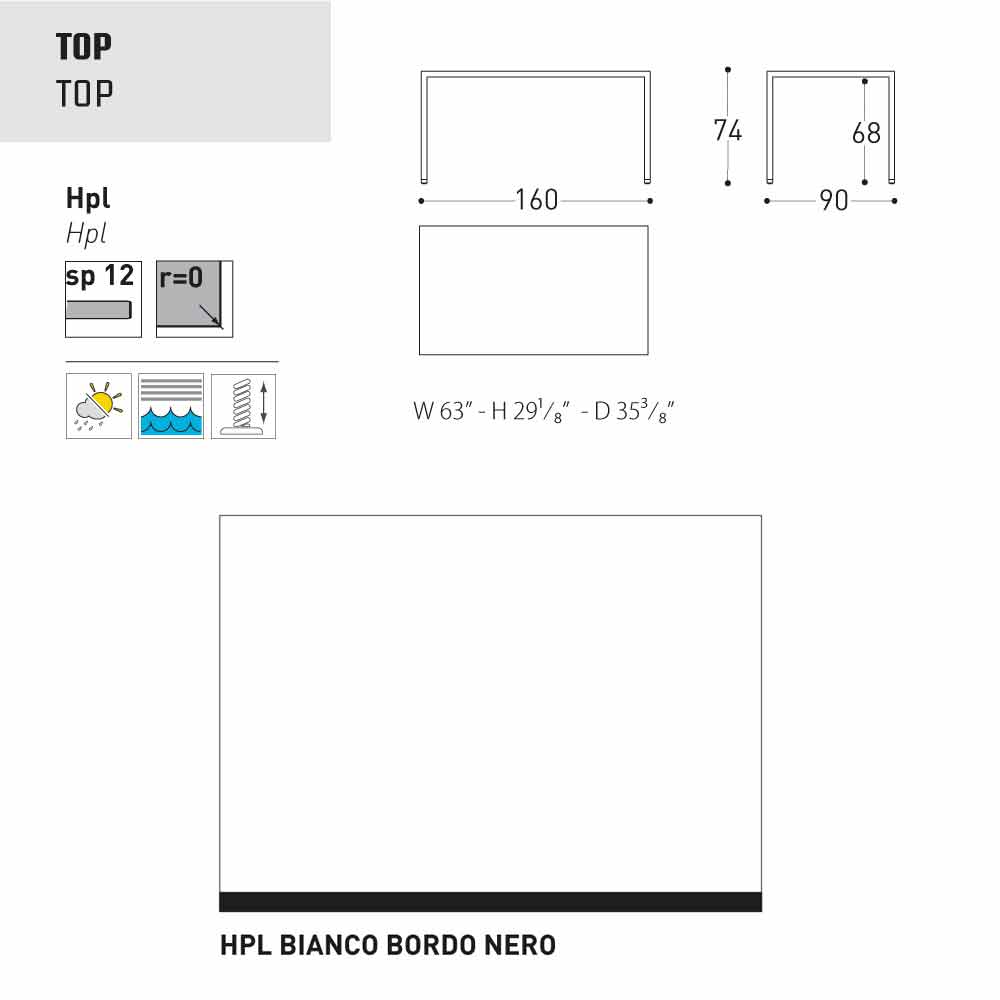 - 160x90xH74 cm