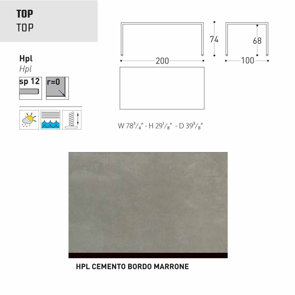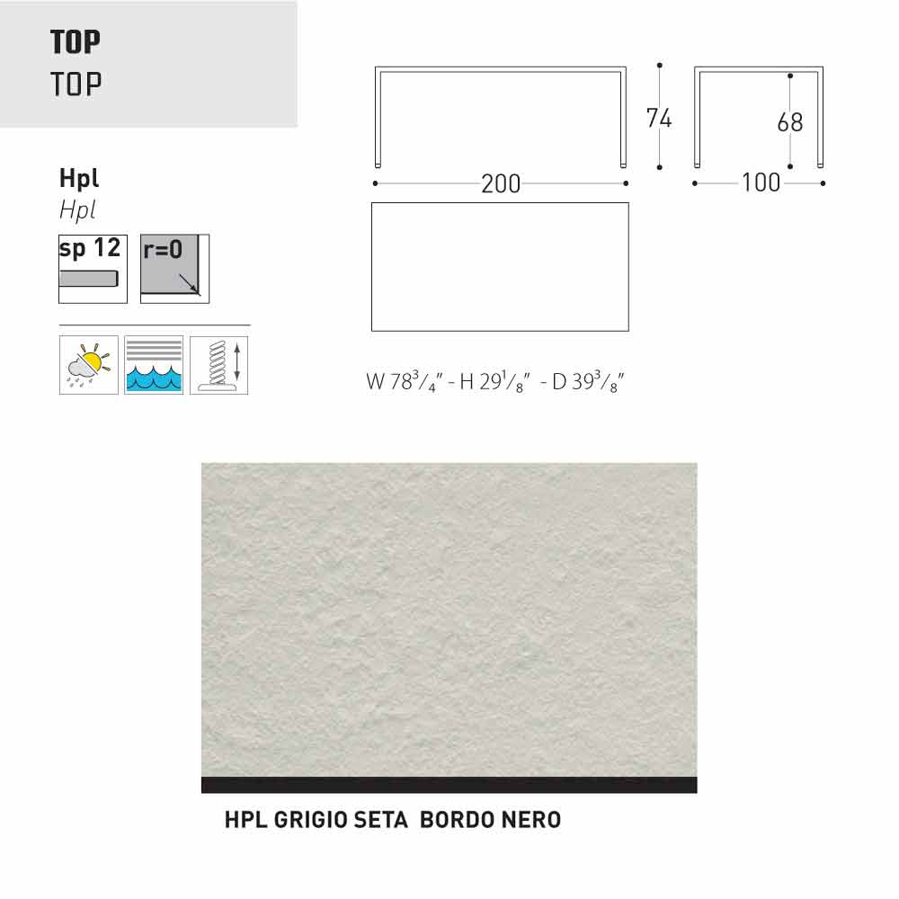 - 200x100xH74 cm